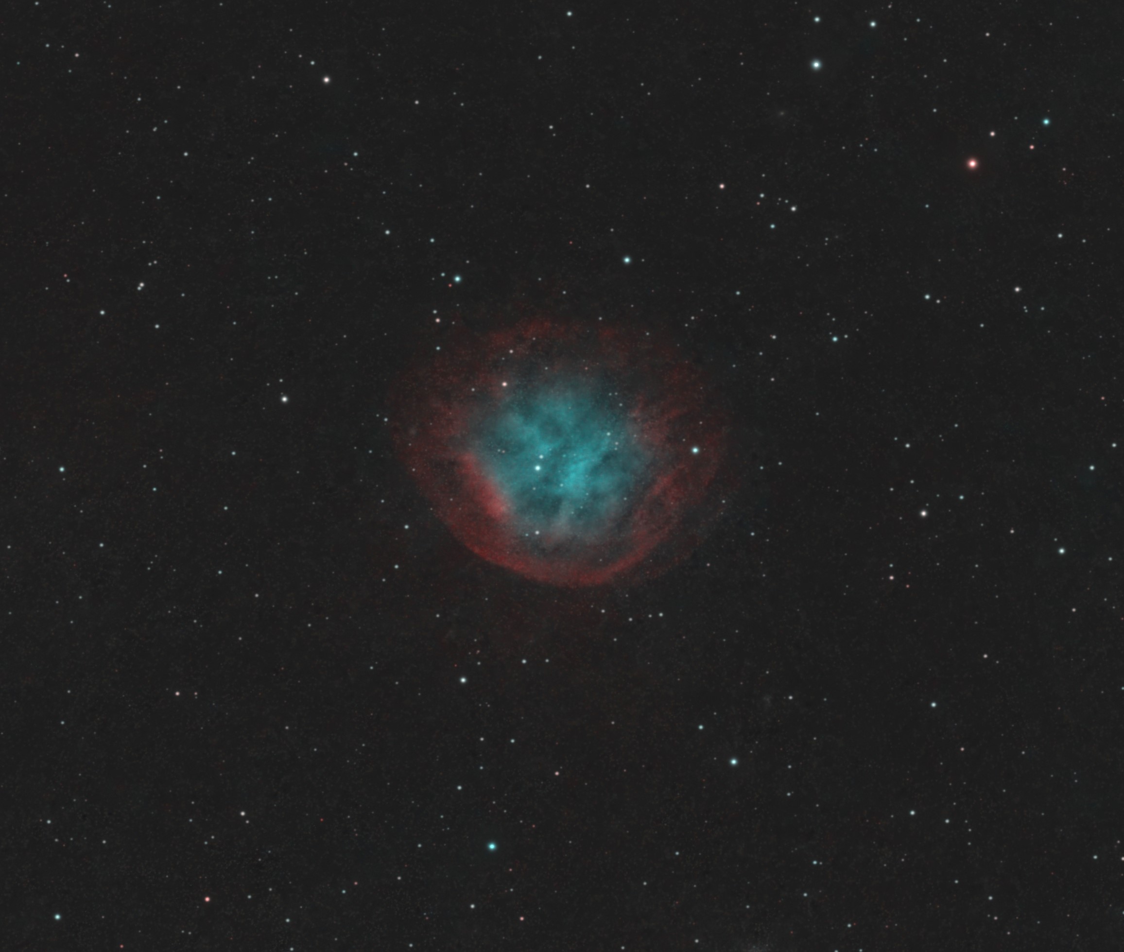 An ancient and very large planetary nebula in the constellation Cancer. The object is large and very faint. For my telescope, the integration time is clearly insufficient; I hope to add as much again.