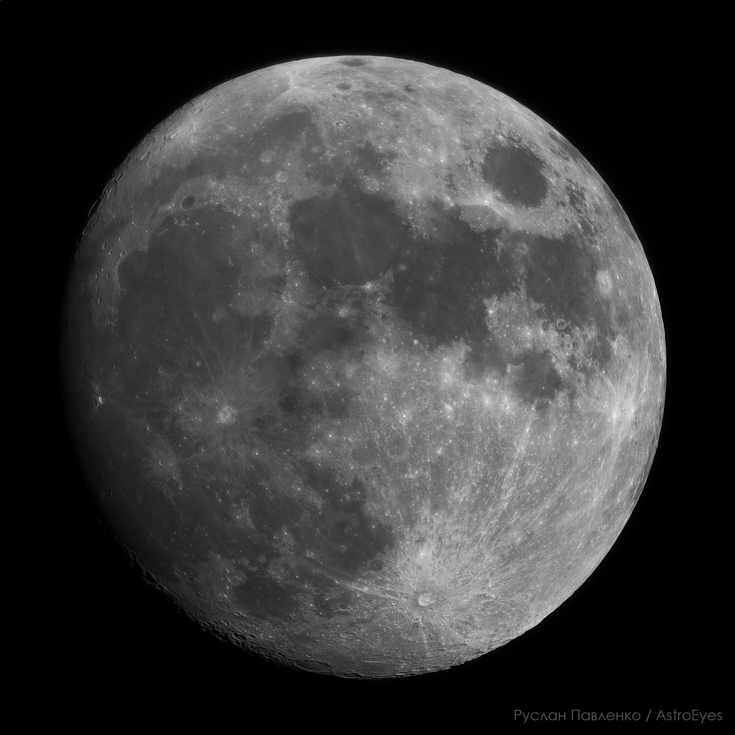 Panorama made from 5 stacks of the Moon, stitching and correction done in Photoshop.