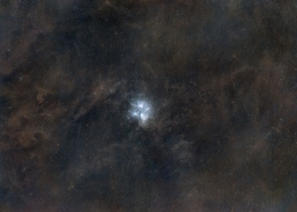 PLEIADES M 45 Telescope/Lens: Samyang 135mm T2.2 Camera: Nikon D850 Mount: АТ-1 Software: DDS, PixInsight, Ps Velikiy Novgorod, Russia Light Pollution: Orange zone Exposure: 100 x 30" ISO/Gain: 1600 - T2,8 My second astrophotography experience. That night I captured the Pleiades and Andromeda. I was learning how to shoot flats :)) Spent three evenings on it. Original size: https://deepskyhosting.com/2BNQHVu Author: Anastasiya Tretyakova