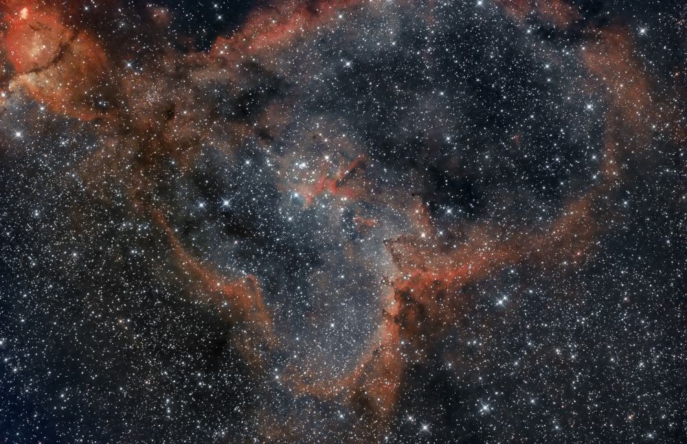 IC 1805 HEART Telescope/Lens: GSO 150/600 Camera: Canon 550da cool Mount: iOptron ZEQ 25 EQ drive Guide Scope: Svbony 50 Guide Camera: Datyson T7M Software: APT, Siril,Fitswork,Ph Accessories: Sharpstar 0.95 Odessa, Ukraine Light Pollution: Orange zone Exposure: 37 x 300" ISO/Gain: 800 - Optolong UHC Shot as a test after aligning the camera sensor. Odessa, backyard, city center. A video about this shoot is on the channel: https://www.youtube.com/watch?v=py6vH28R4-I Original size: https://deepskyhosting.com/3rxCC6n Author: kamera