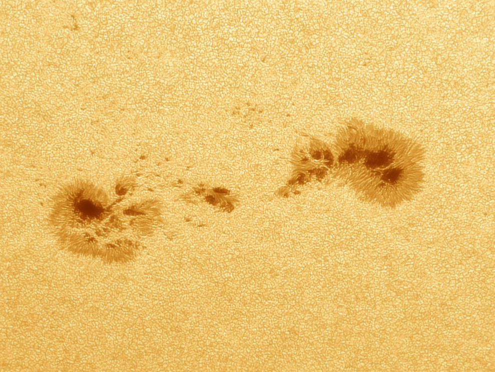 Sunspot Group 3772 from August 3, 2024. Severnoye Tushino, balcony. Telescope LX 85 M6 (D-150 mm, f-1800 mm). Mount EQ-5 OnStep. Aperture filter with AstroSolar solar film. Camera ZWO 290 MM with Player One Photosphere 7.5 nm filter. Exposure - 25 ms, Gain - 175 (29%), stacking 500 out of 2833 frames. Processing in AS, AI 3.0SI, Ps.