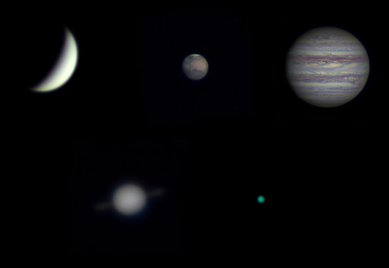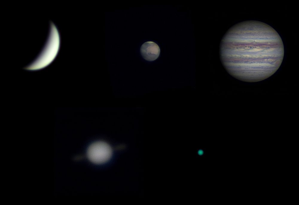 Saturn is almost at the Sun, Neptune is impossible to photograph, very low, the image is blurry. Mercury is not visible, but we expect it soon.