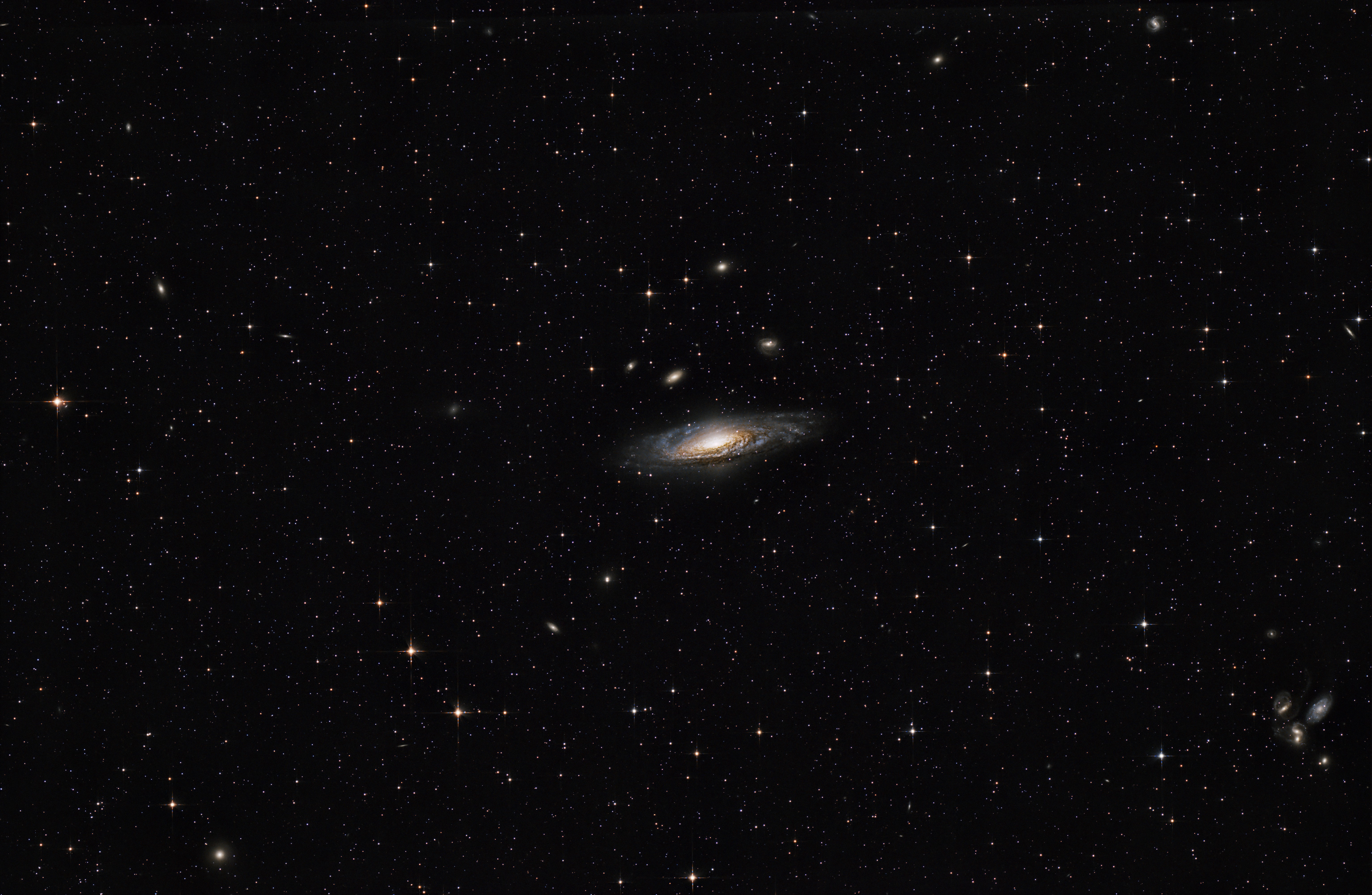 NGC7331 Telescope/Lens: Laniakea 387mm f/3.25 Camera: ZWO ASI2600MC Pro Mount: Кастомная монтировка на гармонических редукторах Guide Scope: ZWO OAG-L Guide Camera: ZWO ASI174MM Mini Software: Pixinsight Accessories: ZWO OAG-L, ZWO ASI174MM Mini, Sharpstar comacorrector x1 Moscow, Russia Light Pollution: Orange zone Exposure: 134 x 120" ISO/Gain: 100 This is the first light of a straight-through Newtonian.