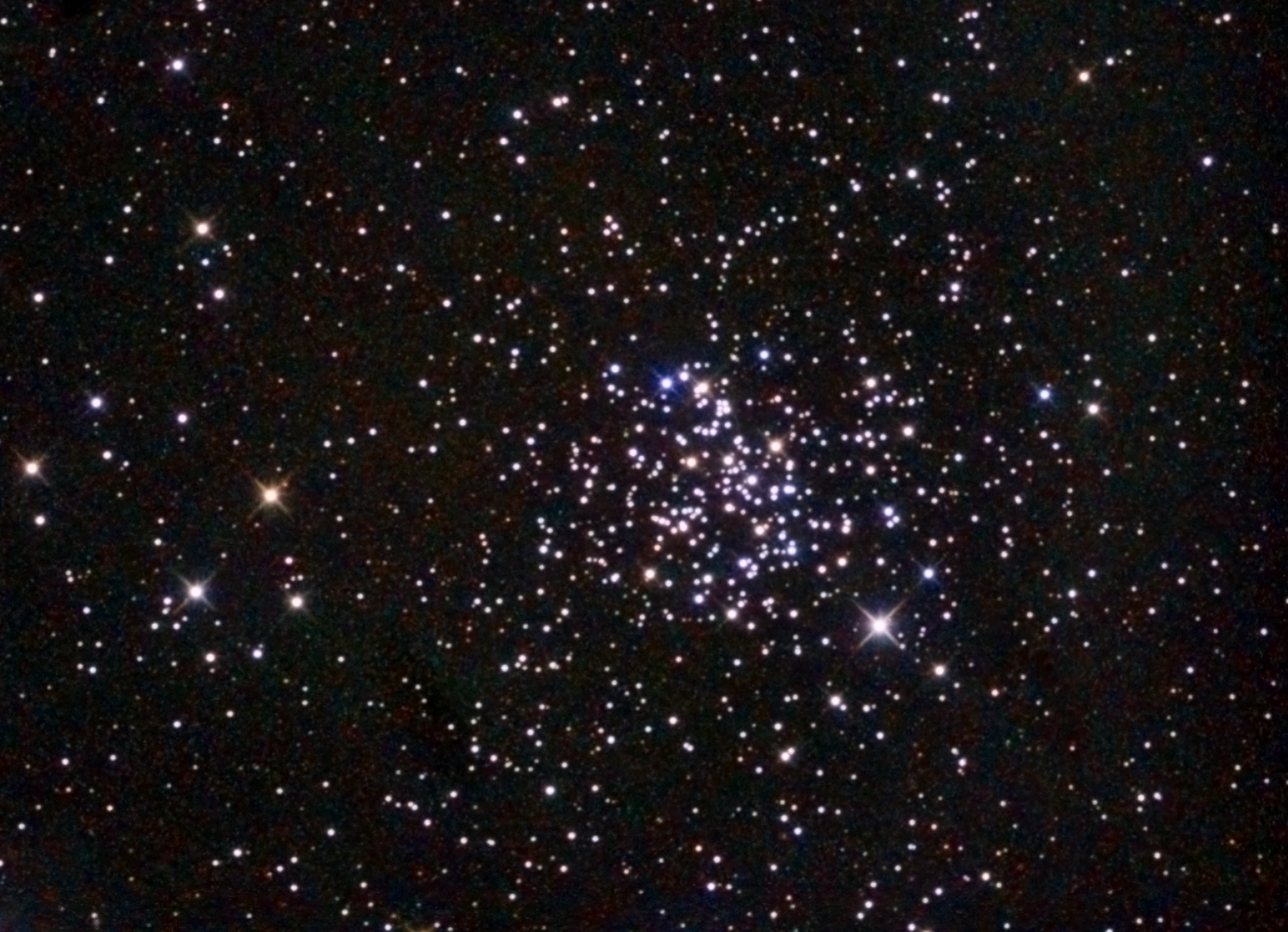 Its age is estimated at 3.2–5 billion years — making it one of the oldest and also nearest open clusters to us. Its mass is approximately 1080–1400 solar masses, but its initial mass was 10 times greater. It contains about 100 Sun-like stars, many red giants, and roughly 150 white dwarfs; in total, over 500 stars.
