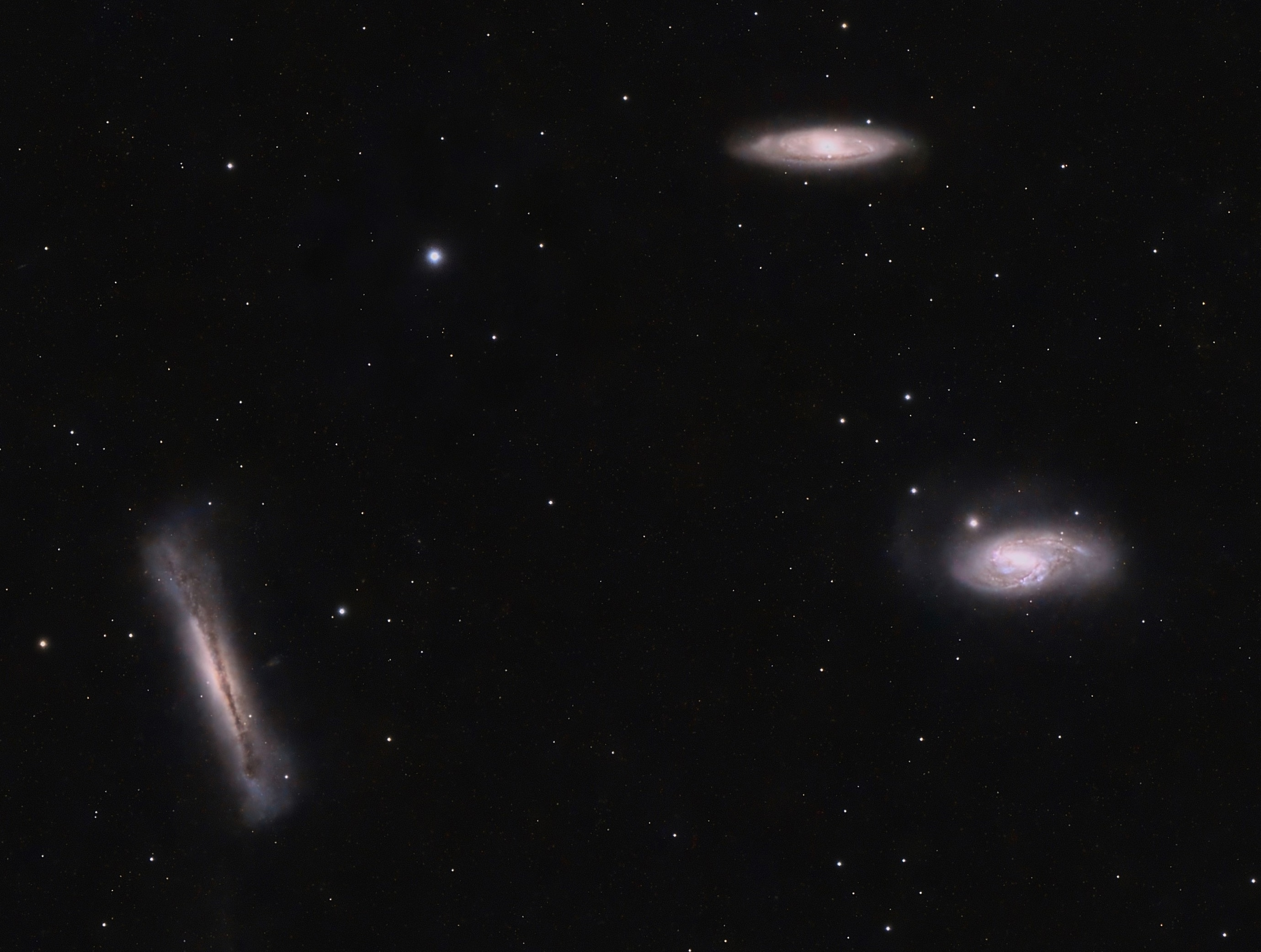 Continuing to test the wonderful Askar SQA 85 mm f/4.8 telescope. This time I used the ZWO ASI 183 MC camera with a small 2.4 µm pixel. The angular resolution became smaller, and the galaxies themselves became larger and more detailed. For a short-focus telescope (408 mm), it seems to me that a small pixel has an advantage, although of course the ASI 183 MC camera itself is clearly outdated. Before this, I shot with the ZWO ASI 2600 MC (3.76 µm pixel).