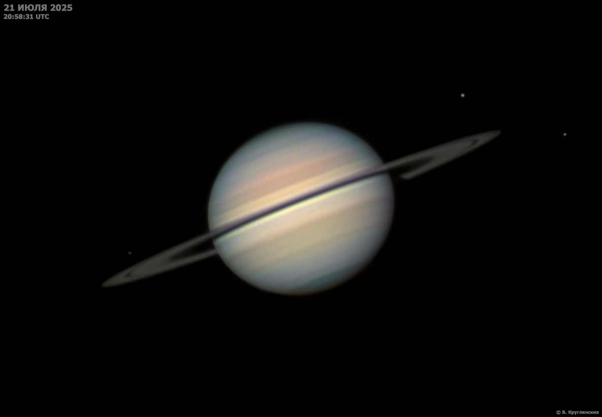 Enceladus, Saturn, Rhea and Tethys. July 21, 2025