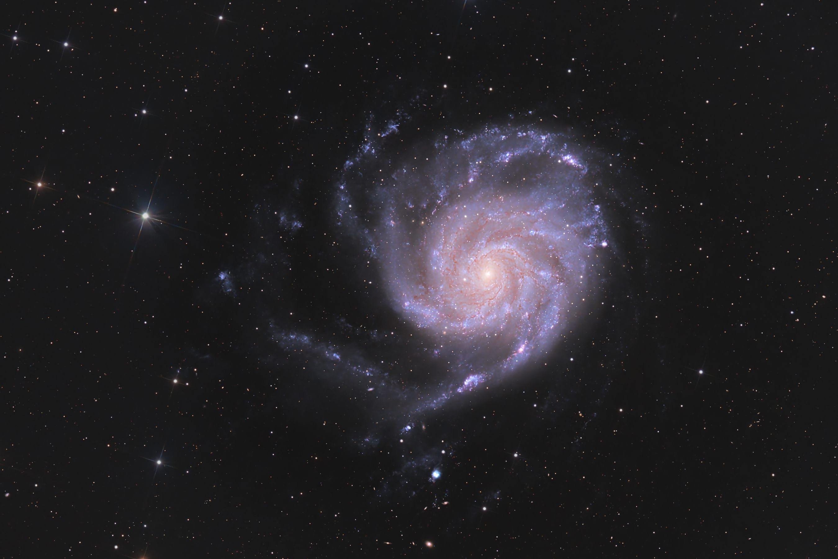 M101 Telescope/Lens: Sky-Watcher 250/1000 Camera: ZWO ASI2600MC PRO Mount: NEQ6 Pro Software: PixInSight Accessories: Nexus Aplaksino, Russia Light Pollution: Green zone Exposure: 563 x 120" ISO/Gain: 100 Original size: https://deepskyhosting.com/BogHHwe Author: Astron