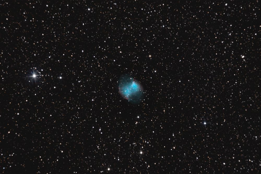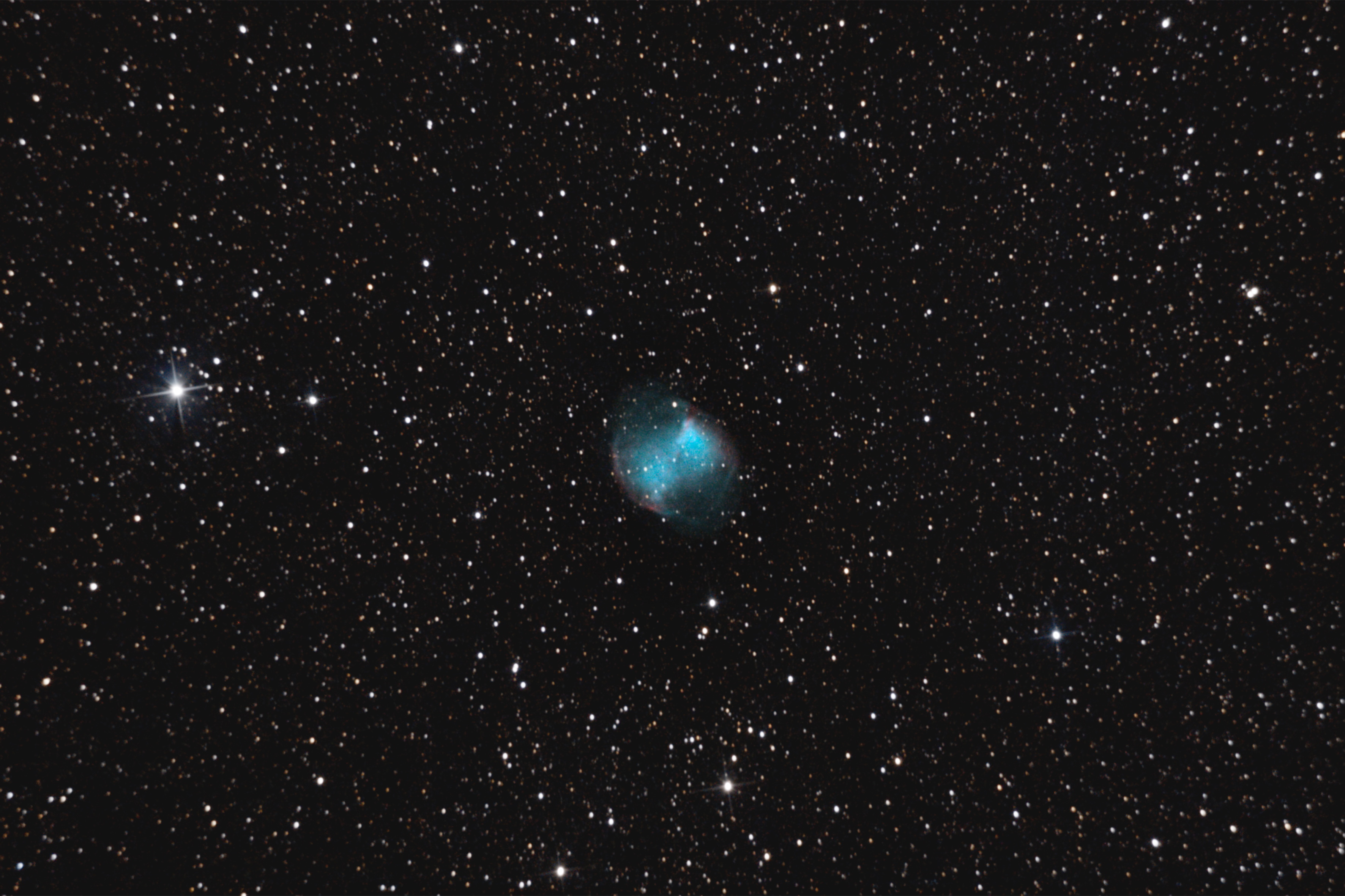 "The Dumbbell" (also known as Messier Object 27, M 27, or NGC 6853) is a planetary nebula in the constellation Vulpecula, located at a distance of 1,250 light-years from Earth. This object was the first planetary nebula discovered by Charles Messier.