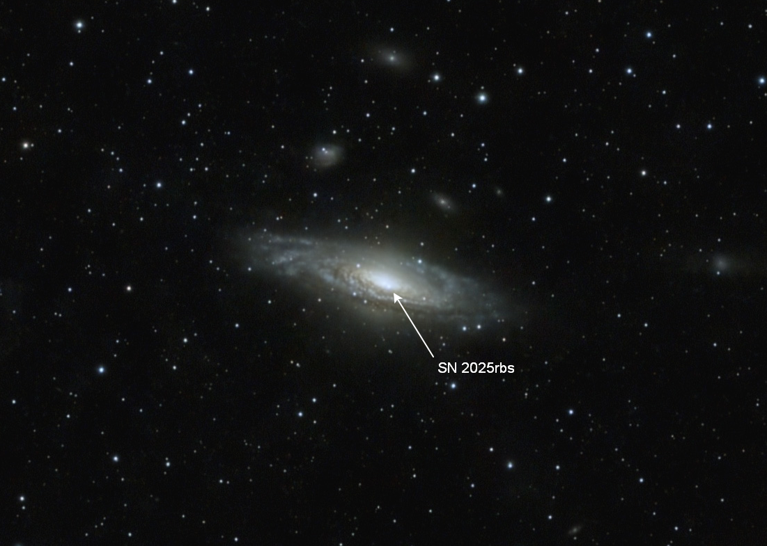 A supernova in a galaxy considered a "twin" of the Milky Way erupted on July 14, 2025. It currently reaches 13th magnitude. It is located almost next to the galaxy's core but is much brighter.