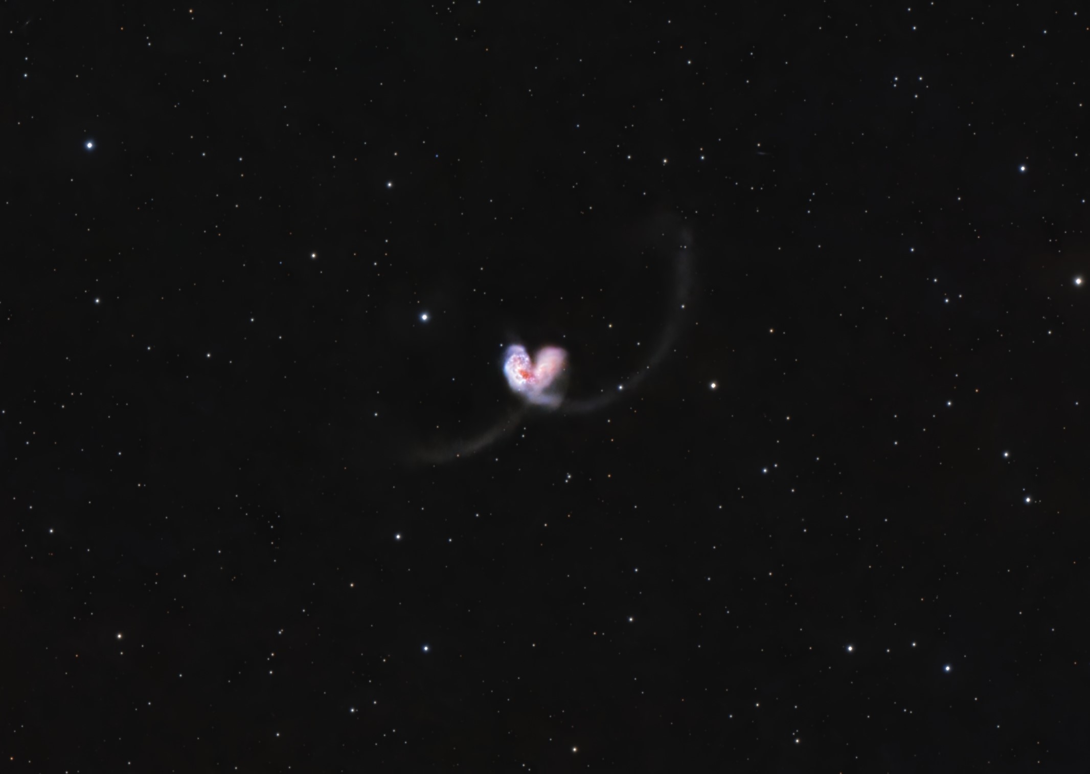A pair of actively interacting galaxies, known as the Antennae.