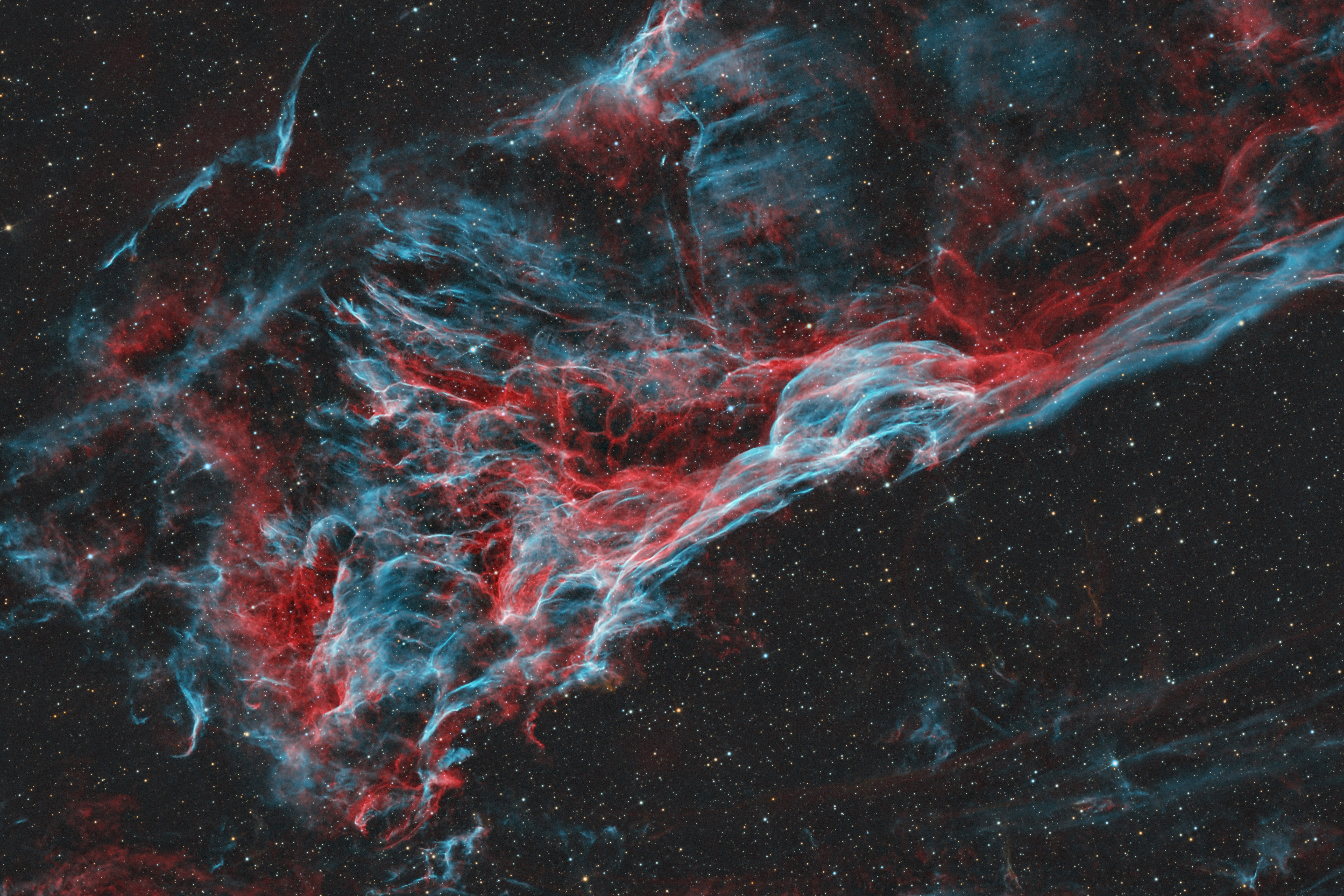NGC 6979 "PICKERING'S TRIANGLE" Telescope/Lens: Прямофокусник 300/996 "Изд.№3" Camera: Touptek IMX 571 C Mount: МТ-120 Guide Scope: ED kenko 60 -400mm Guide Camera: T7m Software: NINA, Pixlnsight, ФШ Accessories: GPU 1.0 Ekaterinburg Rayon Ozera Gluhoe, Russia Light Pollution: Orange zone Exposure: 40 x 300" ISO/Gain: 152 - Optolong L-Ultimate The first more or less serious accumulation on the new tube 300/996 "Ed.No.3". The wind was very strong, the guiding was so-so, but still managed to accumulate a little during the still short night. Original size: https://deepskyhosting.com/GCvs8XC Author: Oleg Novoselov