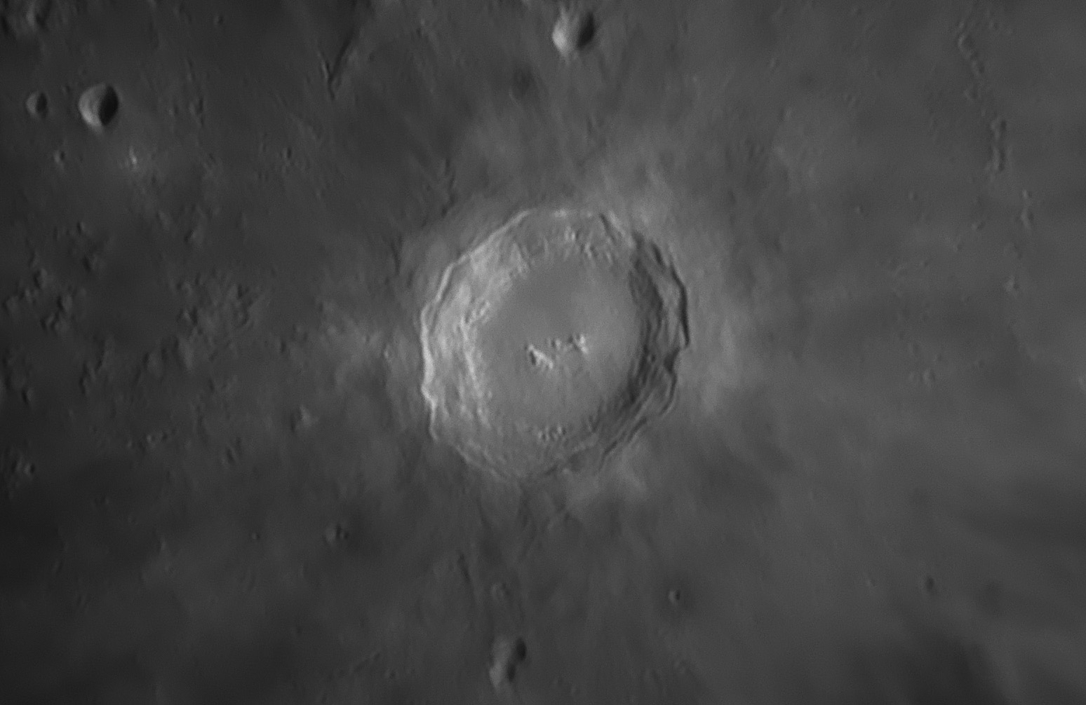 Moon 10.01.25 17:53 UTC+5. Altitude 36°19', illuminated 86.5%. Crater Copernicus.
