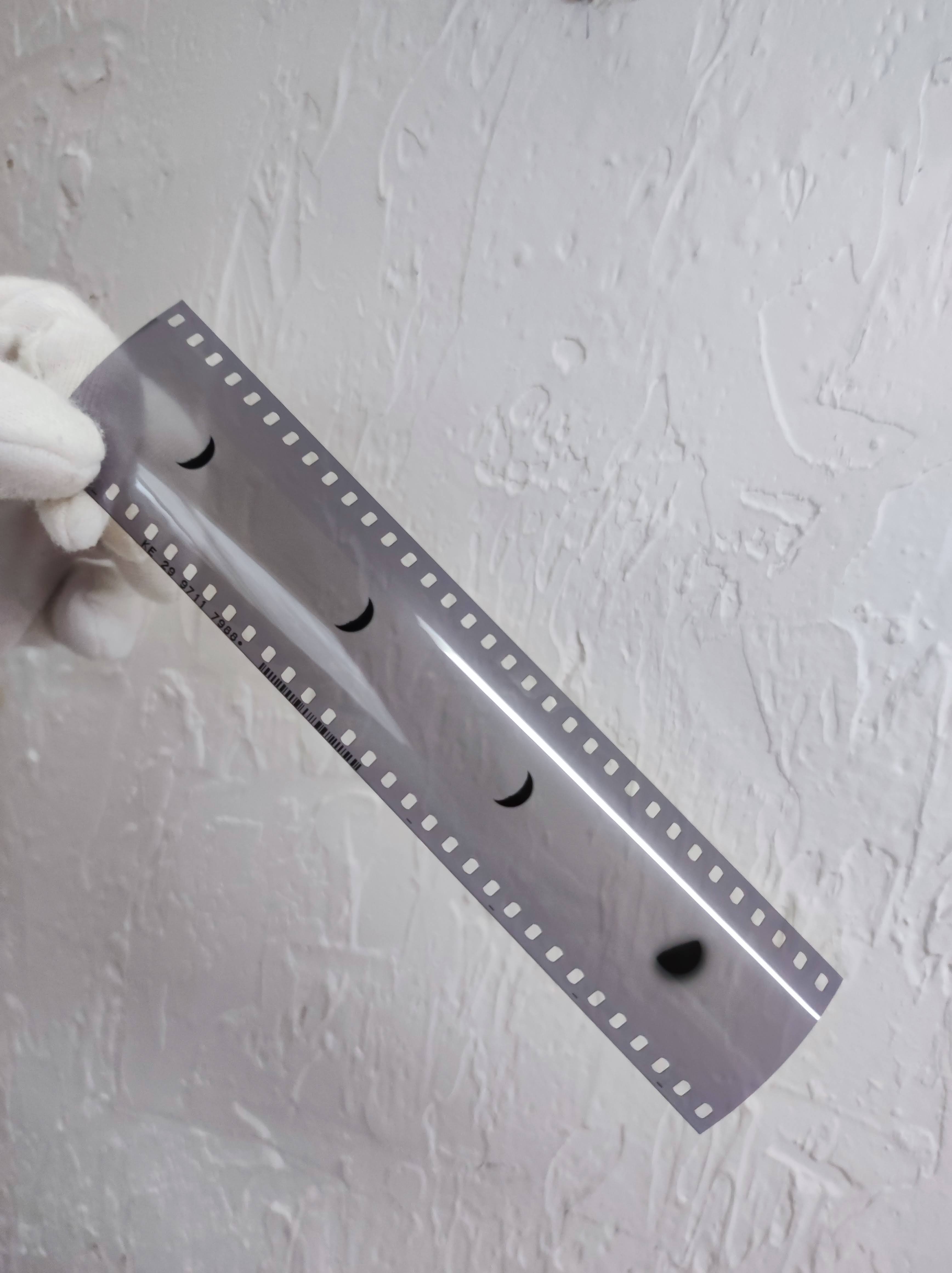 A test shot. On February 17, 2024, I developed the first frames of the Moon shot on film. Made some exposure mistakes (overdid it), will try again.