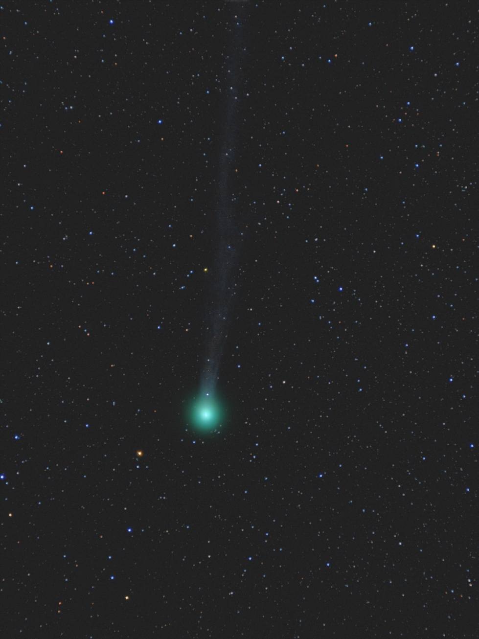 Снято 14 января 2015 года во дворе многоэтажки в Харькове. Длина хвоста кометы около 5 градусов. Голова кометы в этот день уверенно различалась невооруженным глазом.