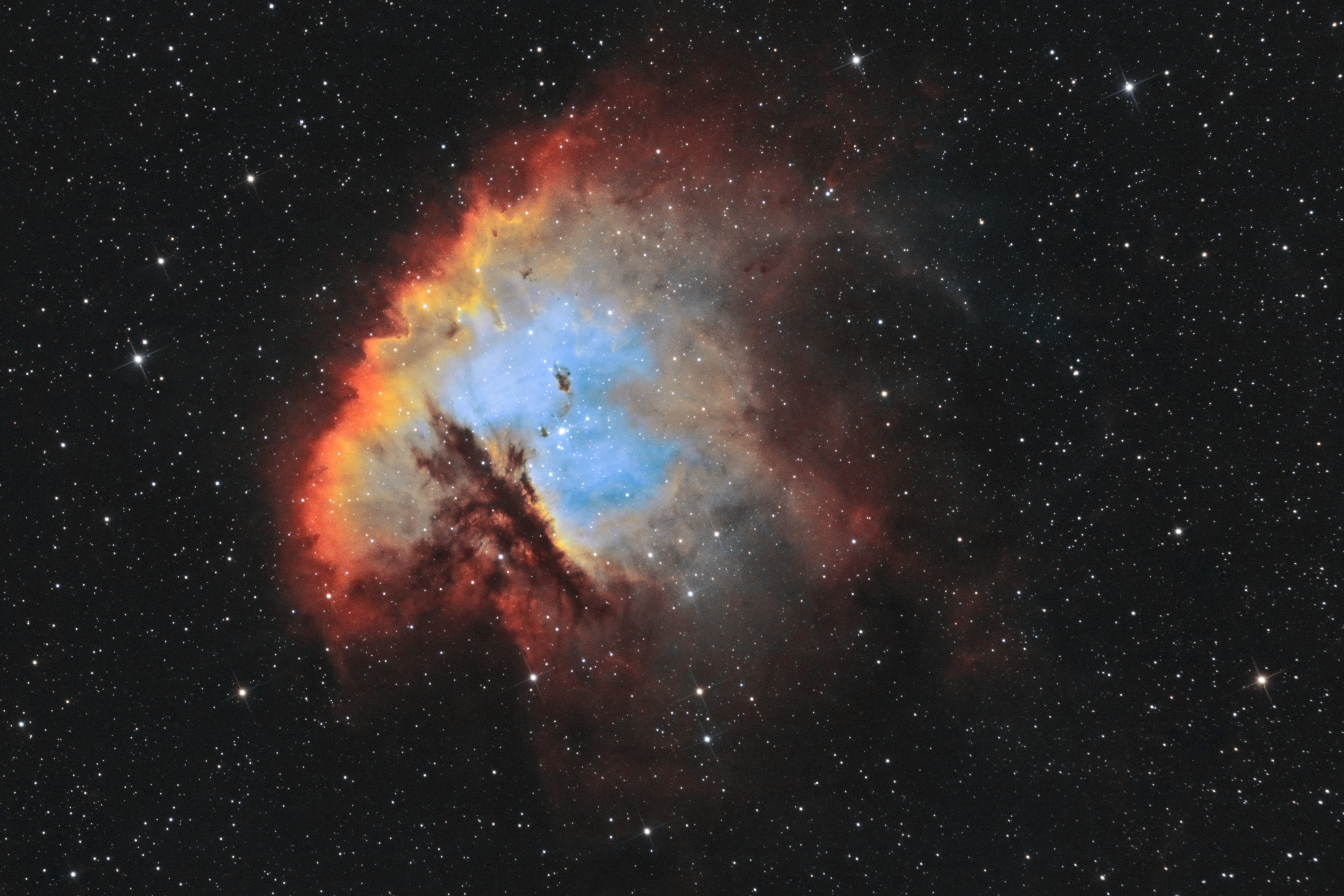 Thank you! This is the Foraxx palette. Yes, I use only 2 narrowband filters and combine them using a script by Paul Hancock (PaulymanAstro). You can read about how this script works here: https://remoteastrophotography.com/2023/01/foraxx-palette-script-dynamic-narrowband-combinations. I've also tried it with three filters—I didn't find much difference. If you add SII, the yellow color shifts closer to orange. In my opinion, using just 2 filters actually produces a more interesting result.