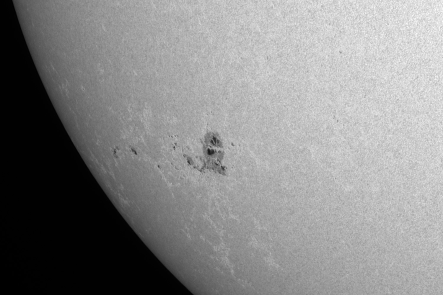 Sun - group of spots AR13806 30.08.2024 09:41 (GMT +5). Chelyabinsk, loggia window 4th floor. Celestron Advanced GT, Svbony SV503 80ED, 3x Barlow SV193, SV305M Pro, film filter, Player One Photosphere 7.5 nm. Exp=10ms, Gain=280. SharpCap, AutoStakkert - 100/2000k, Photoshop.