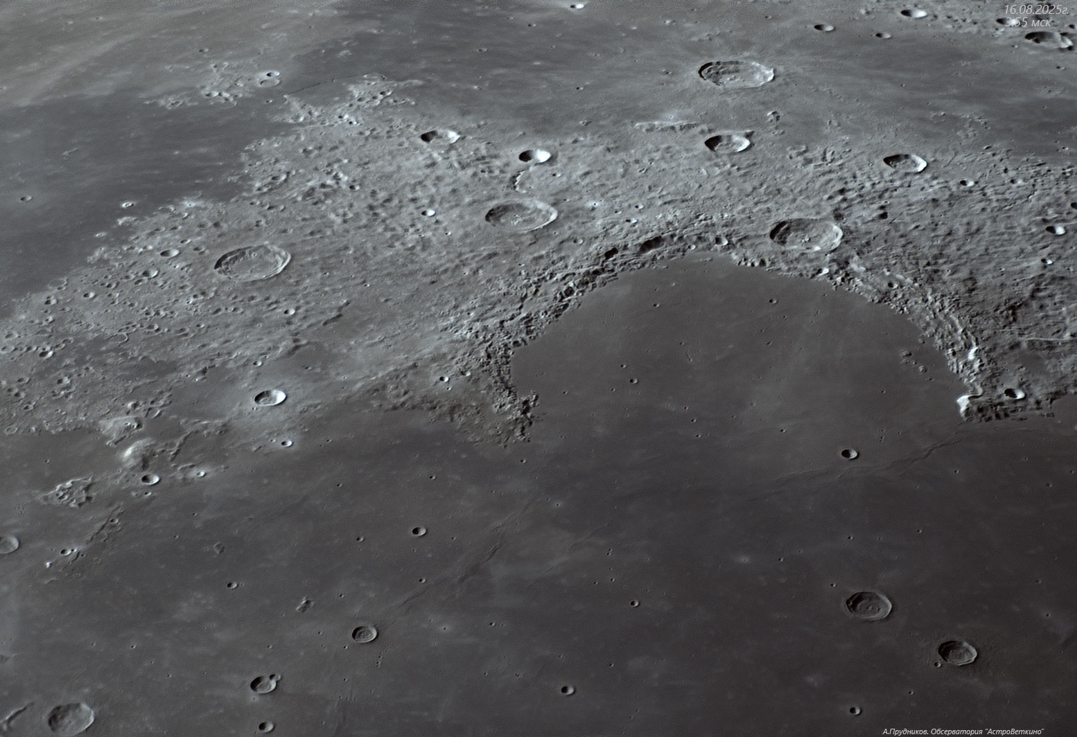 Fragment of the lunar surface on August 16, 2025. Tal-250K, LB2x, equivalent focal length ~ 4.2 meters. Neptune-C camera, 50% of the original. Image stability could be rated as three points on a five-point scale. Weak haze, no wind. Observatory "AstroVetkino" https://astronomy.ru/forum/index.php/to ... 764.0.html