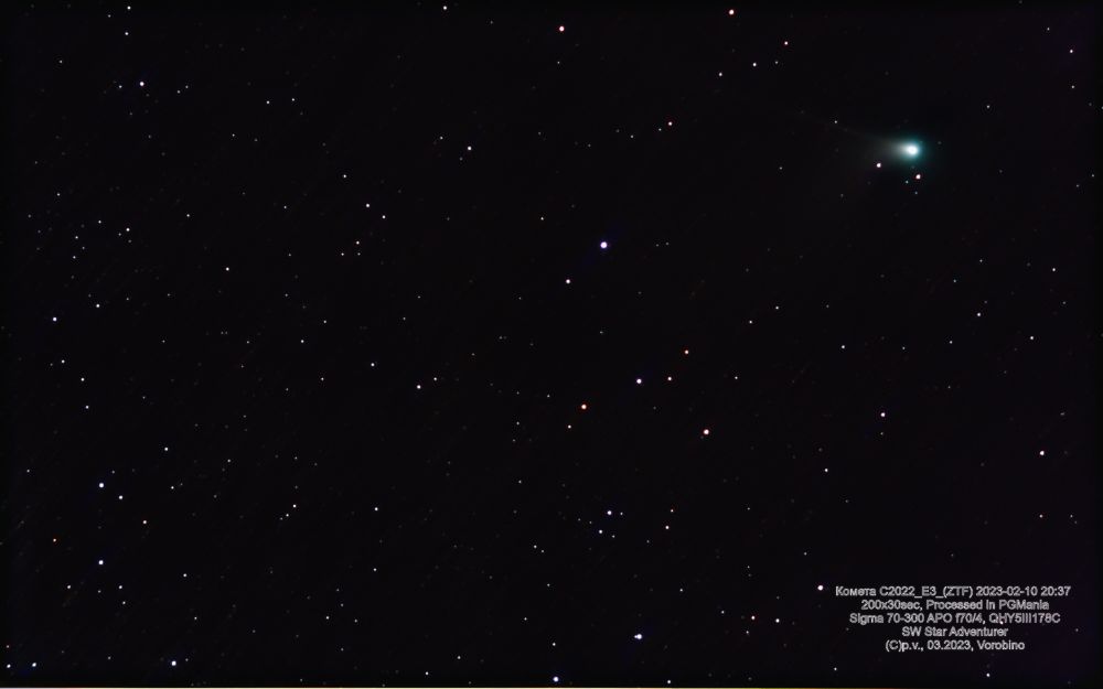 Comet C2022_E3_(ZTF) 2023-02-10 20:37 200x30sec, PGMania Sigma 70-300 APO f70/4, QHY5III178C SW Star Adventurer (C)p.v., 03.2023, Vorobino