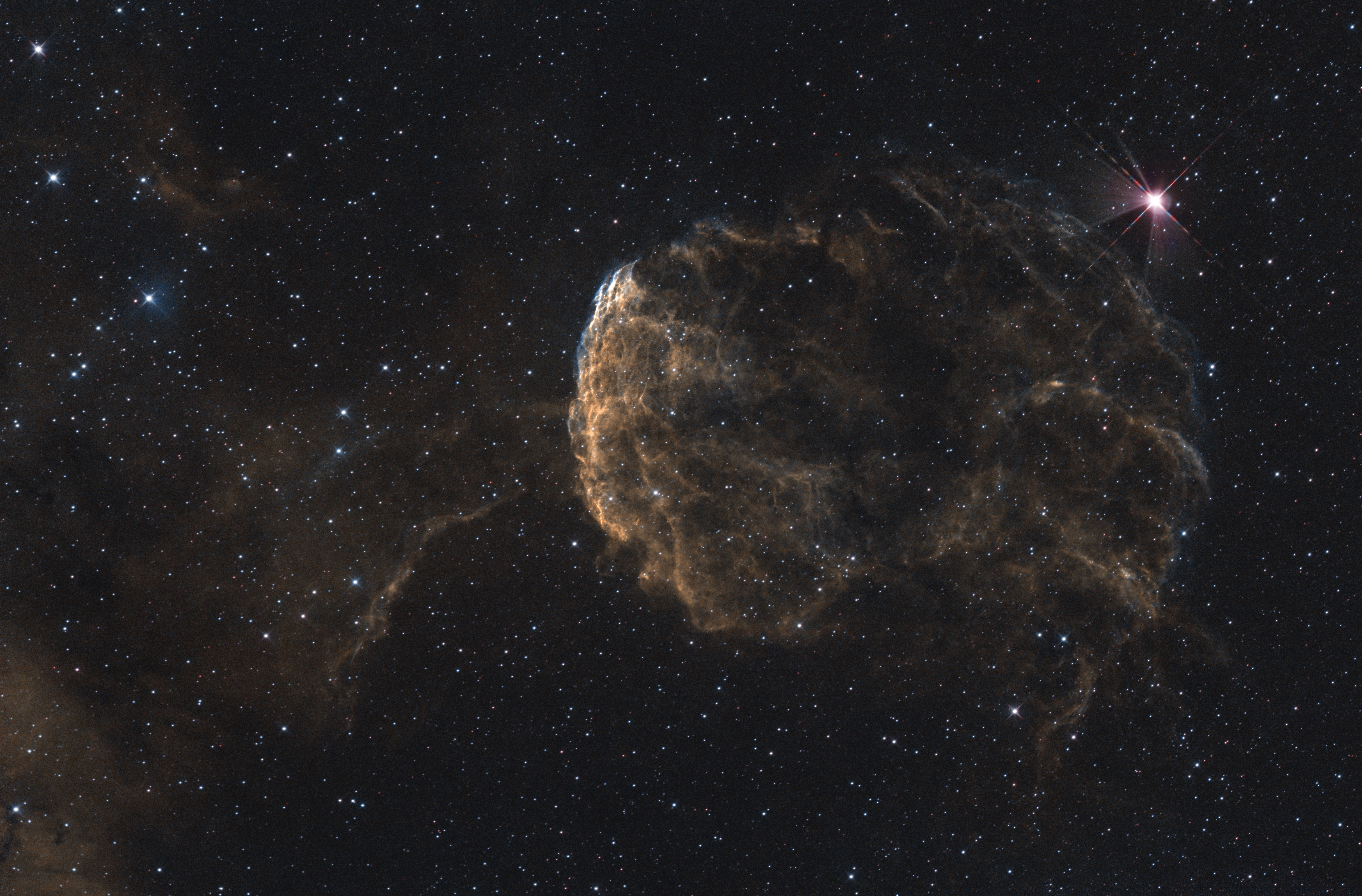 First light with the new camera, compared to a simple (modded) DSLR – the sky from the ground. This time, guiding failed again. Neither PHD2 settings nor precise polar alignment helped. We'll be overhauling the mount and see what comes of it.