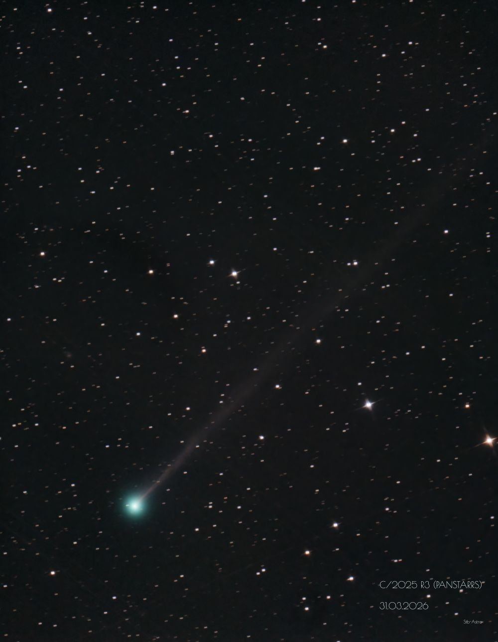 Shot on the morning of March 29 through high-altitude clouds in the pre-dawn sky. Altitude about 14 degrees above the horizon, with a large city 50 km away in t…