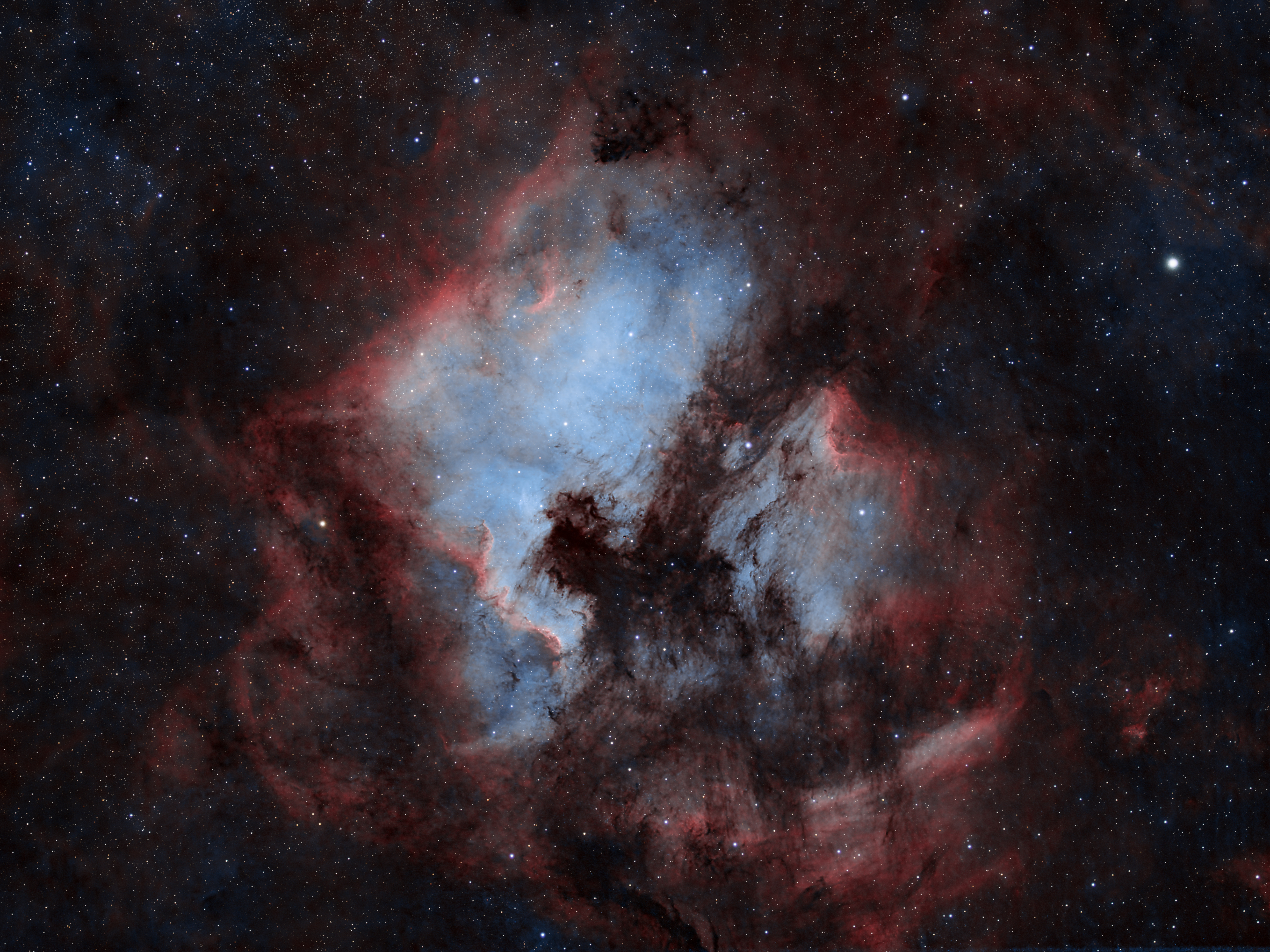 I didn't like the acidic colors of my North America. Then GraXpert released a new version with deconvolution. Anyway, I got the urge to redo it. Purists might criticize the too blue background tone, but in the context of the whole picture, I like it.
