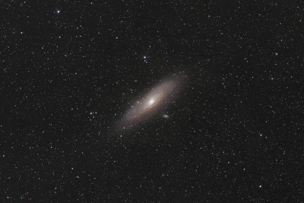 ANDROMEDA GALAXY (M31) Telescope/Lens: Jupiter-37A 135mm Camera: canon 450d Mount: Sky-Watcher EQ 2 + часовой привод Software: Siril, GraXpert, PixInsight Ardatov, Russia Light Pollution: Green zone Exposure: 99 x 20" ISO/Gain: 400 My first photo with tracking, actually it was supposed to be a test stack and I didn't expect such a result.