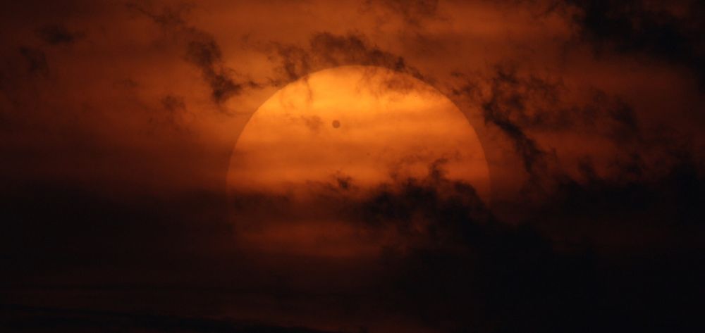 At a quarter to six, the luminary appeared for exactly a minute in a gap between the clouds, presenting itself in a formidable but beautiful perspective.