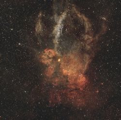 Dithering every 5 frames. Two processing versions: color unchanged (red) and color in the HOO palette (blue-yellow). Processing: PixInsight, ADBE, blurX, noiseX…