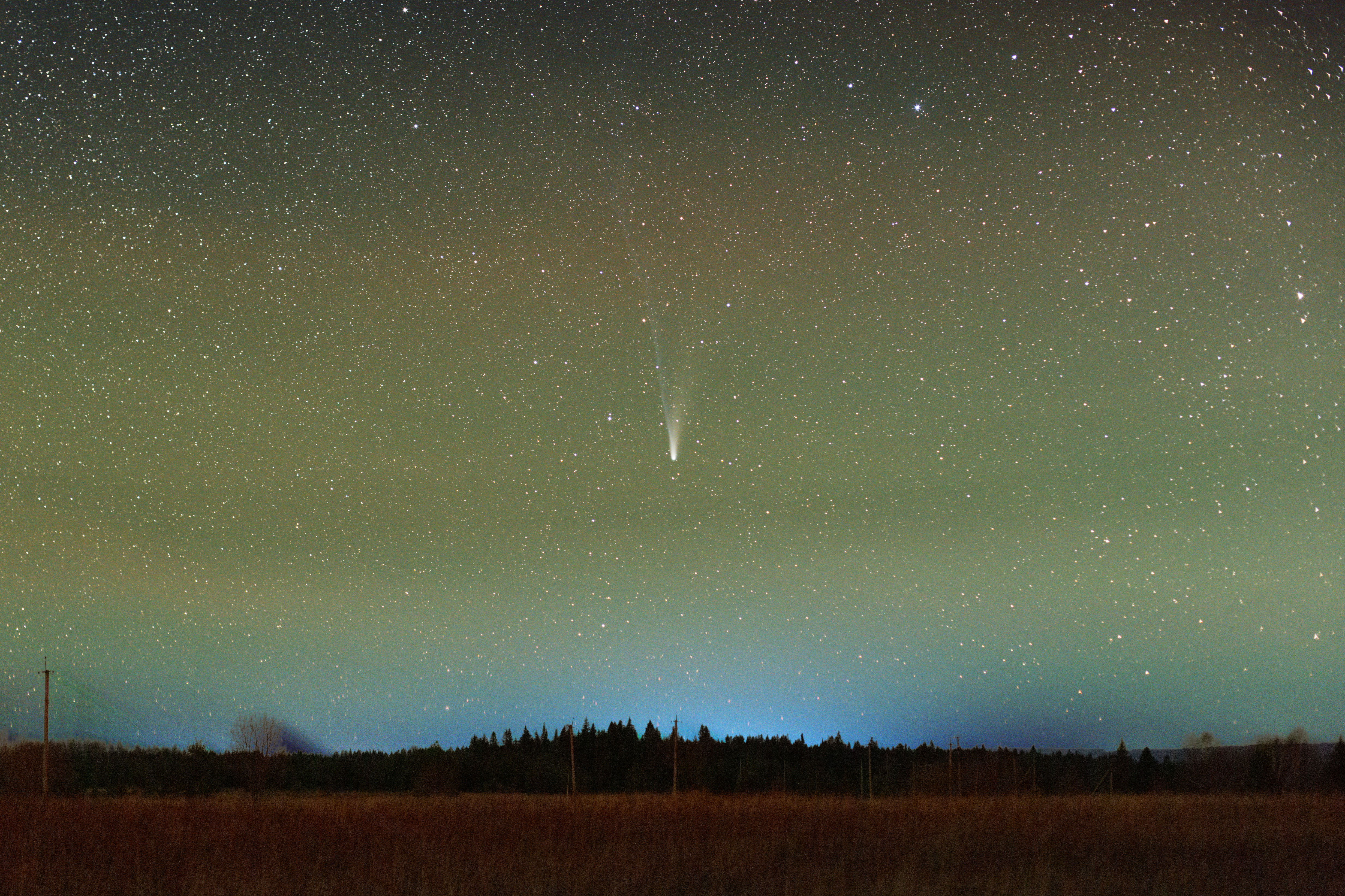 Сделал дополнительную широкоугольную серию кометы, пока основная съемка велась на телевик с монтировки.
