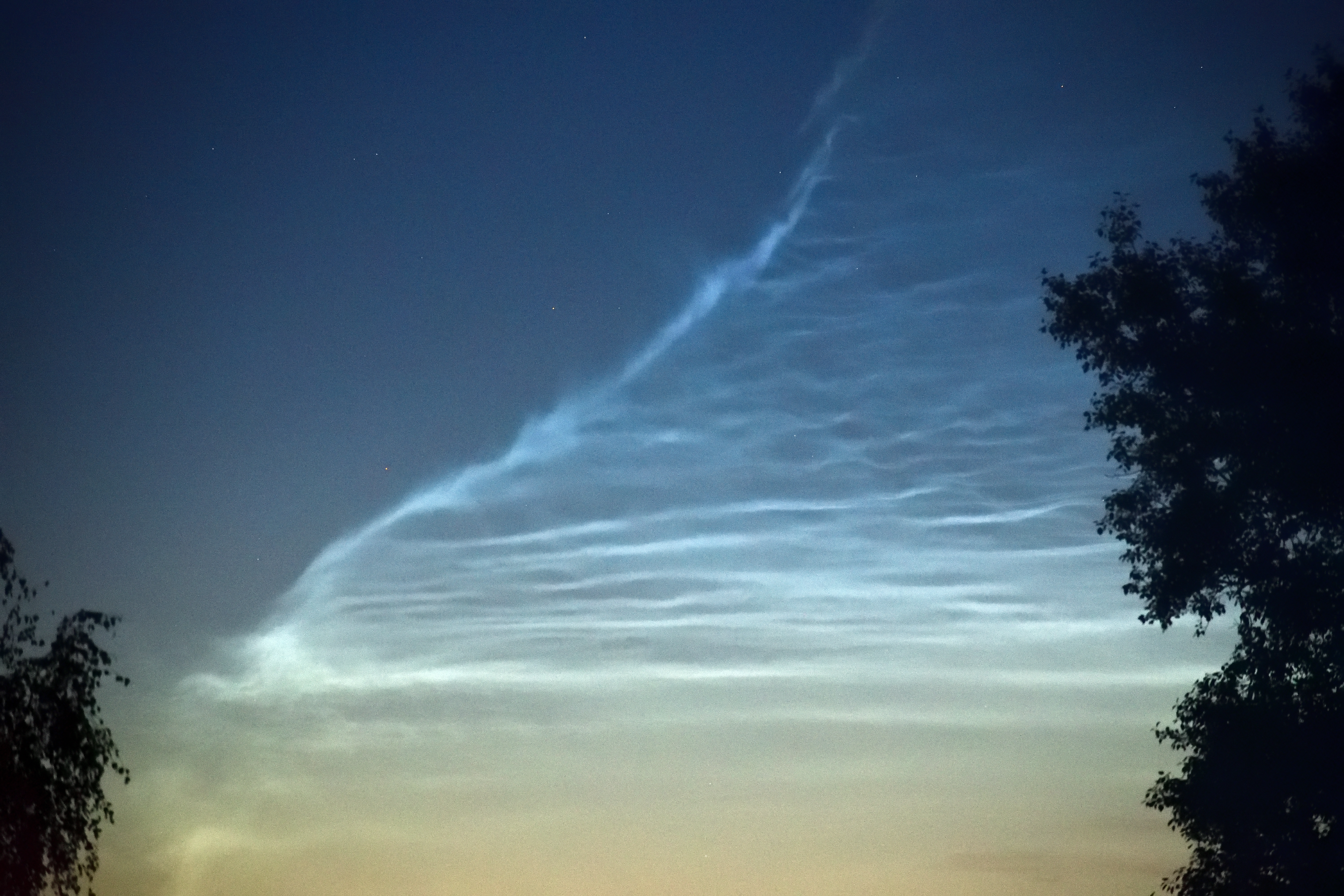 Observed noctilucent clouds on 2024-07-23 at 01:30 Moscow time from the village of Medvedeva Pustyn, Dmitrovsky District, Moscow Oblast (56.527103, 37.120930). The noctilucent clouds were in the predawn sky between north-northeast and northeast. The coverage of noctilucent clouds in the sky was estimated at 0.1-0.5%, with no other clouds present. The height of the noctilucent clouds above the horizon was estimated between 8 and 14 degrees. The morphological form of the clouds was close to type IIIa "Ripples" according to the classification of meteoweb.ru.