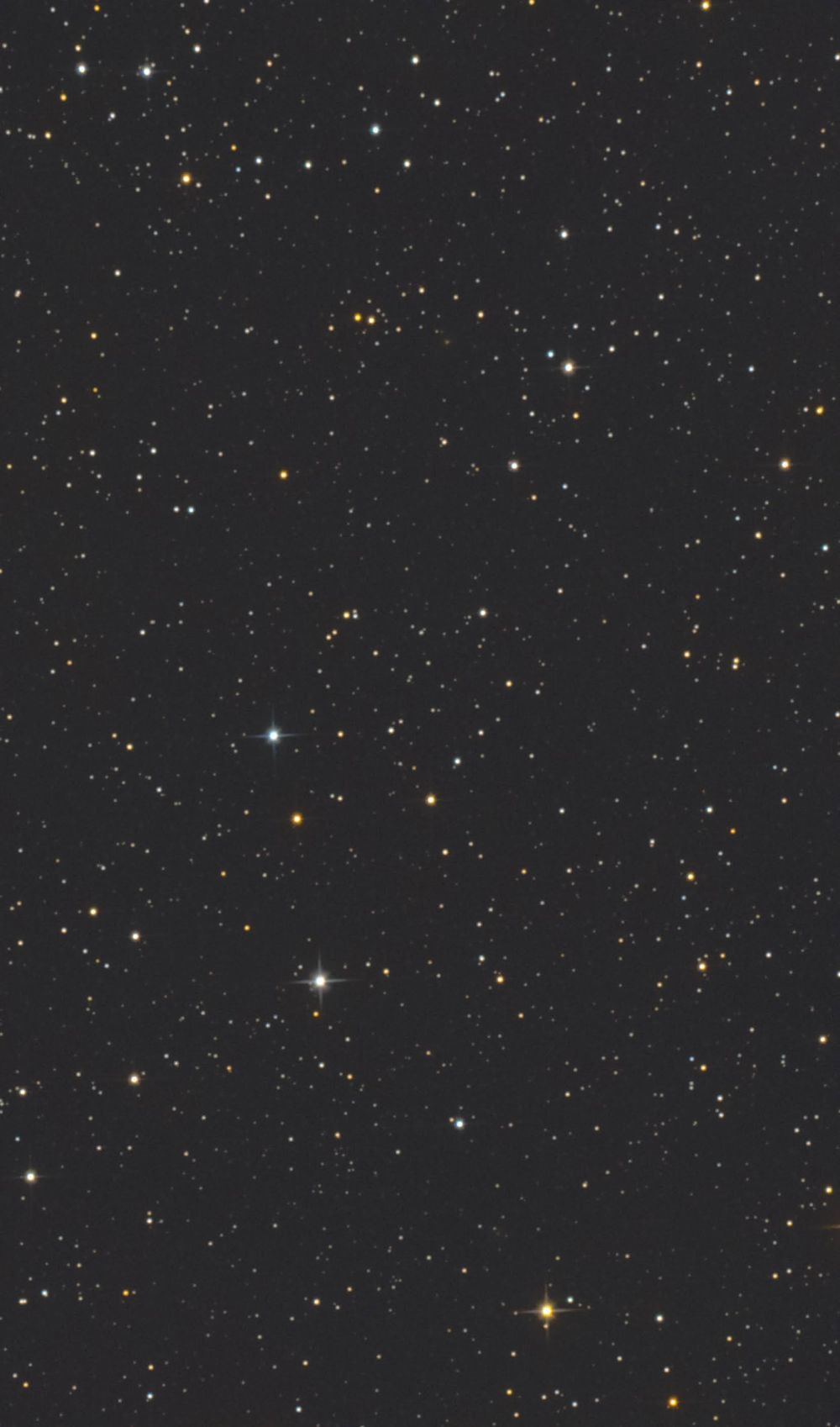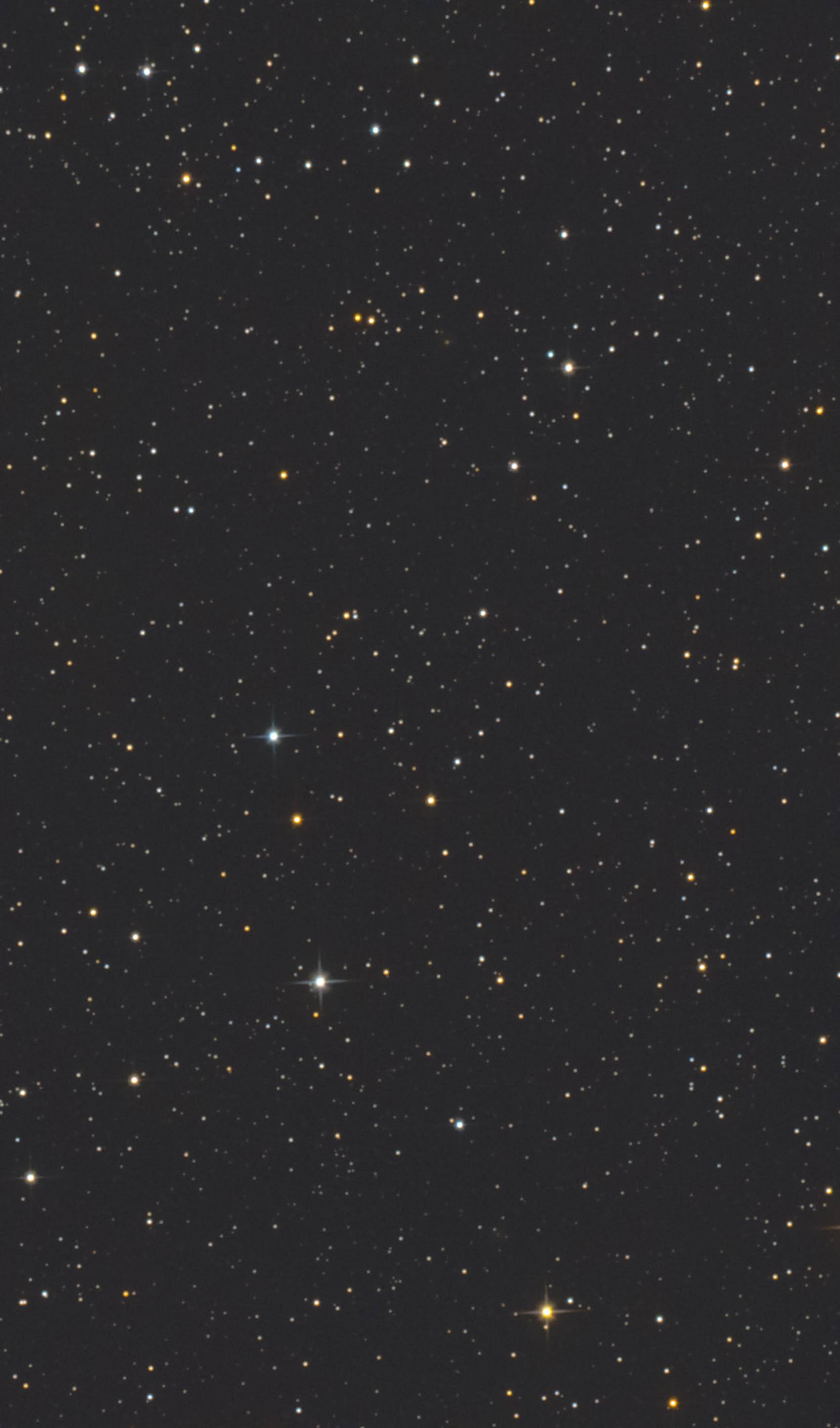 A heart-shaped asterism in Auriga turned out interesting. This is 29 frames at 120 seconds each, no darks. DSS, Siril, PS CC. The stars form intricate shapes, chains, and mysterious creatures.
