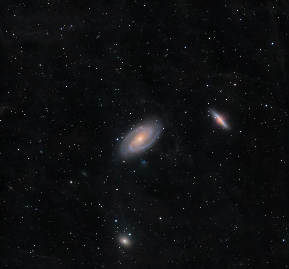 Removed hydrogen data from the stack. Stretched in Siril using the GHS tool with the Human weighted luminance method, which gave the galaxies a more interesting color, in my opinion. As for IFN, probably to bring them out better, about twice as much integration time is needed.