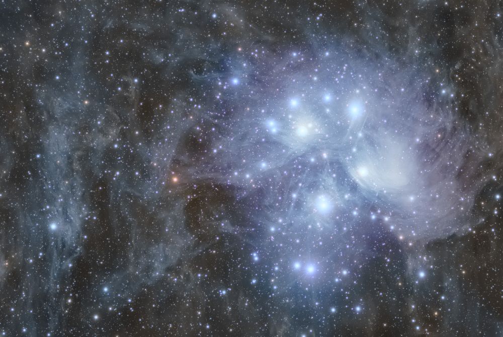 M45 AND THE DUST CLOUD Telescope/Lens: SVBONY SV503 80ED f7 Camera: Touptek IMX 571 C Mount: MT-120 Software: NINA, Siril, Photoshop, GraXpert Accessories: 0.8x Flattener Polya Kurganskoy Oblasti, Russia Light Pollution: Blue zone Exposure: 125 x 180" ISO/Gain: 101 Slept and reprocessed. It turned out better) Original size: https://deepskyhosting.com/VMHW5ge Author: mrVad