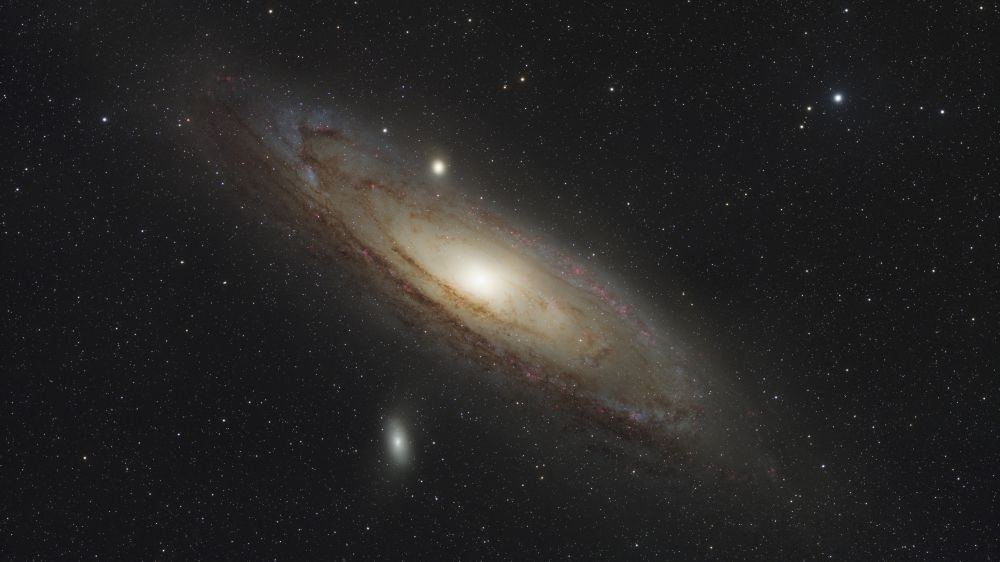 Seven summer nights of shooting. A mosaic of five RGB regions and two Ha. Mixed up the mosaic corners again, so the lower right corner has low integration and poor SNR.