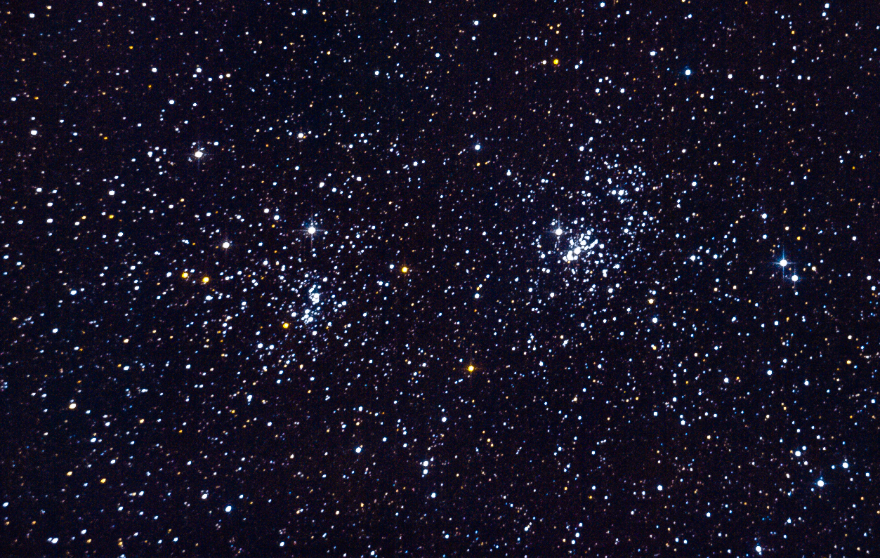 THE DOUBLE CLUSTER H–Χ PERSEI (NGC 869 AND NGC 884) Telescope/Lens: Sky-watcher 150/750PDS Camera: Canon 600D Mount: EQ3-2 Guide Scope: Celestron CG4 RA DEC Software: DeepSkyStacker, Siril Gelendjik, Russia Light Pollution: Yellow zone Exposure: 70 x 20" ISO/Gain: 800 my first star cluster uhh , I'm glad Original size: https://deepskyhosting.com/WhTbmvr Author: Arishka