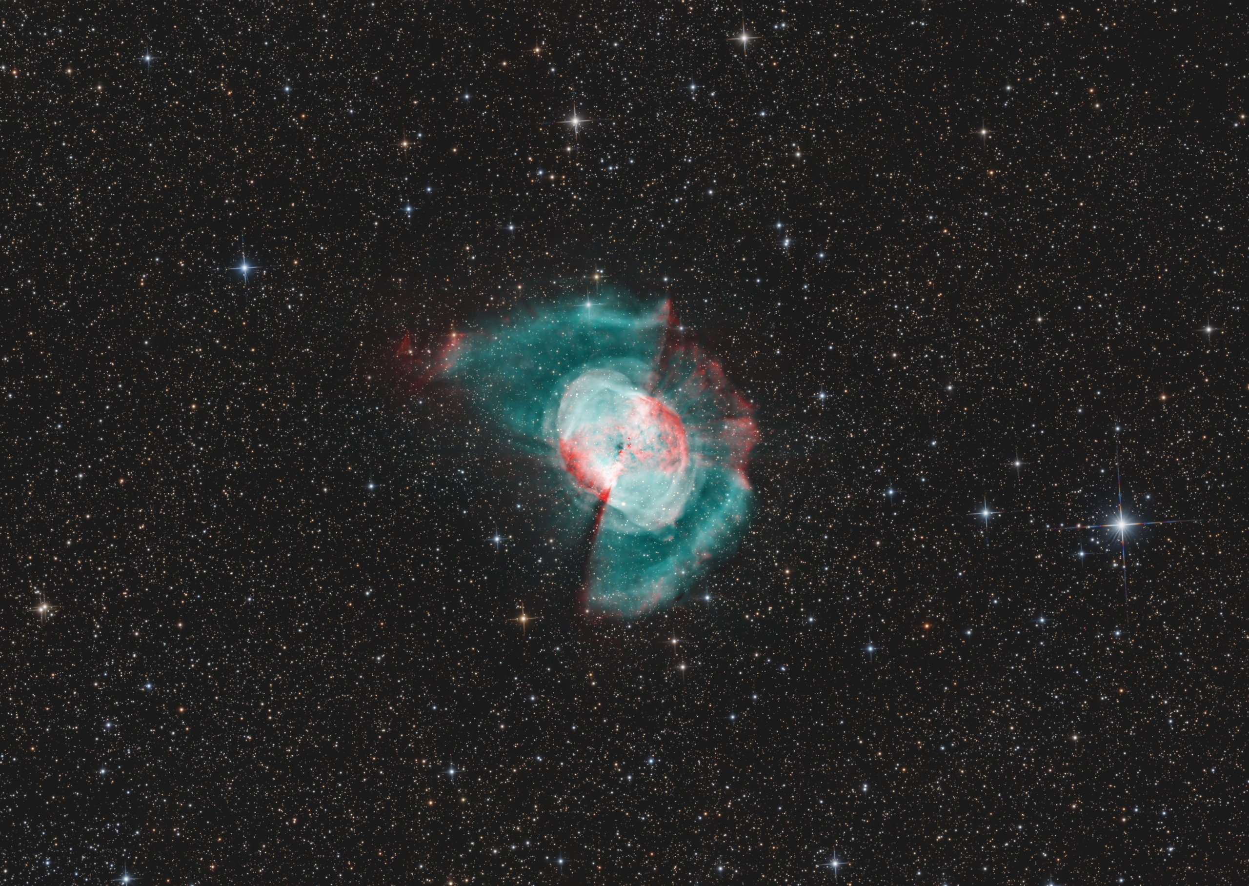 In fact, his work on this nebula (https://deepskyhosting.com/NOQ5L66) originally inspired me to reshoot the Dumbbell.