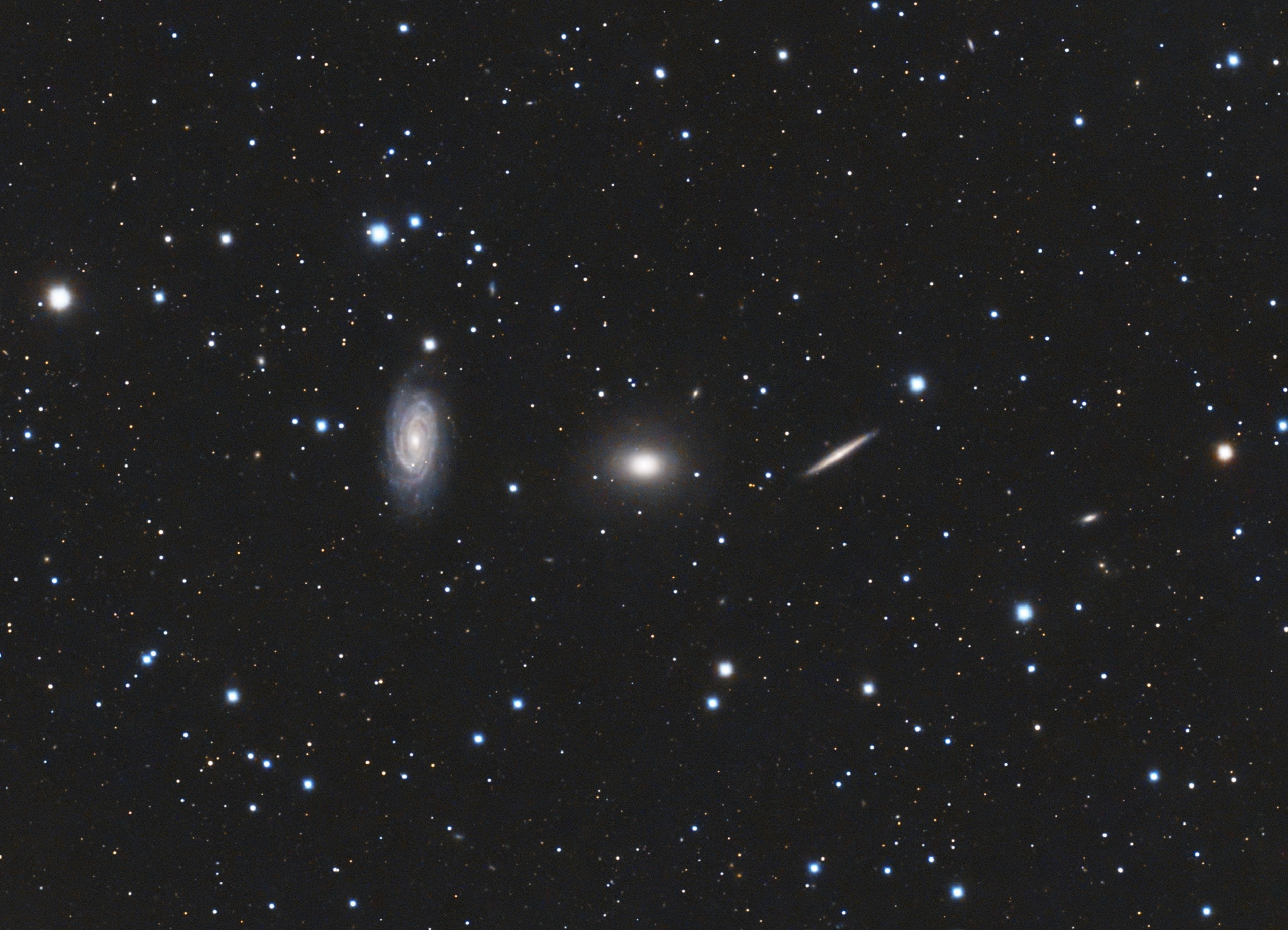 NGC 5985 is a face-on spiral galaxy, distance about 125 million light-years, apparent size 5.4'x2.7'.