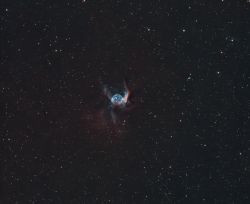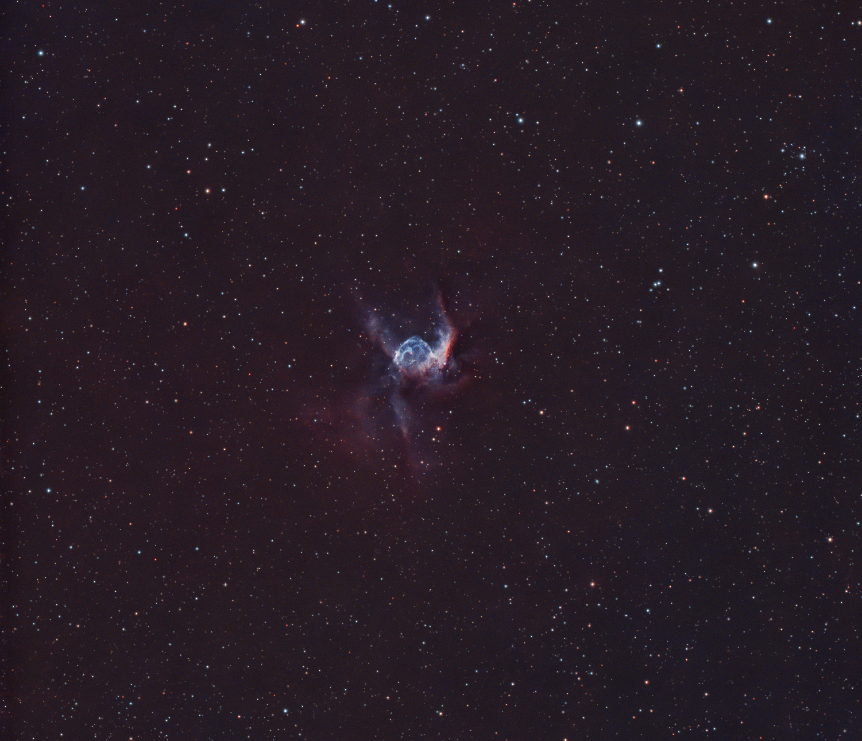 Had to cram everything onto the flat roof to at least somewhat dampen the convection from neighboring houses—it's painfully low. And a good chunk of the files went to the trash; I only stacked the more or less decent frames. I'll definitely try to get as many more if possible. A nice addition for the Sharpless catalog collection. Sensor temperature -32°C, ASIAIR processor 2.8°C. And outside it was -26°C.