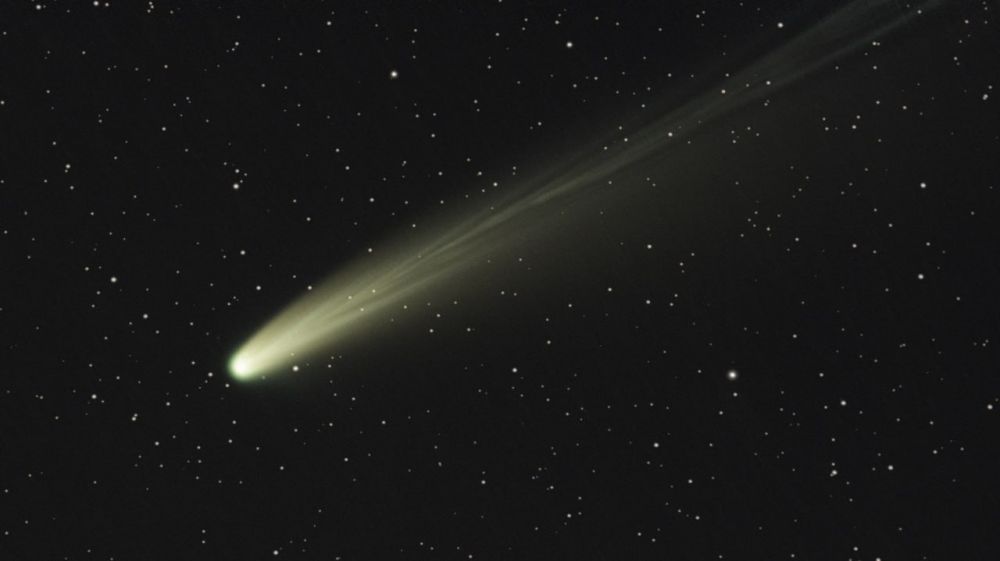 Comet C/2025 A6 Lemmon captured on the coast of the Azov Sea. Due to the comet's poor positioning in the frame, the photo unfortunately had to be heavily cropped.