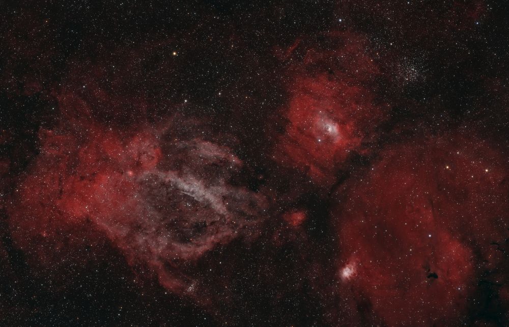 SH2-157, NGC7635 LOBSTER CLAW AND BUBBLE Telescope/Lens: SharpStar 61EDPH III Camera: ZWO ASI2600MM PRO Mount: ZWO AM3 Guide Scope: Askar 32 ф4 Guide Camera: ZWO ASI120MM mini Software: Pixinsight Pavlovskiy Posad, Russia Light Pollution: Orange zone Exposure: 160 x 180" ISO/Gain: 100 - Laida Ha 5 nm 160 x 180" ISO/Gain: 100 - Laida Oiii 5 nm 160 x 180" ISO/Gain: 100 - Laida SII 5 nm 140 x 30" ISO/Gain: 100 - Optolong R 140 x 30" ISO/Gain: 100 - Optolong G 140 x 30" ISO/Gain: 100 - Optolong B Slightly reworked, tried to extract more information. Is it better? Original size: https://deepskyhosting.com/daY7udC Author: Lzaza