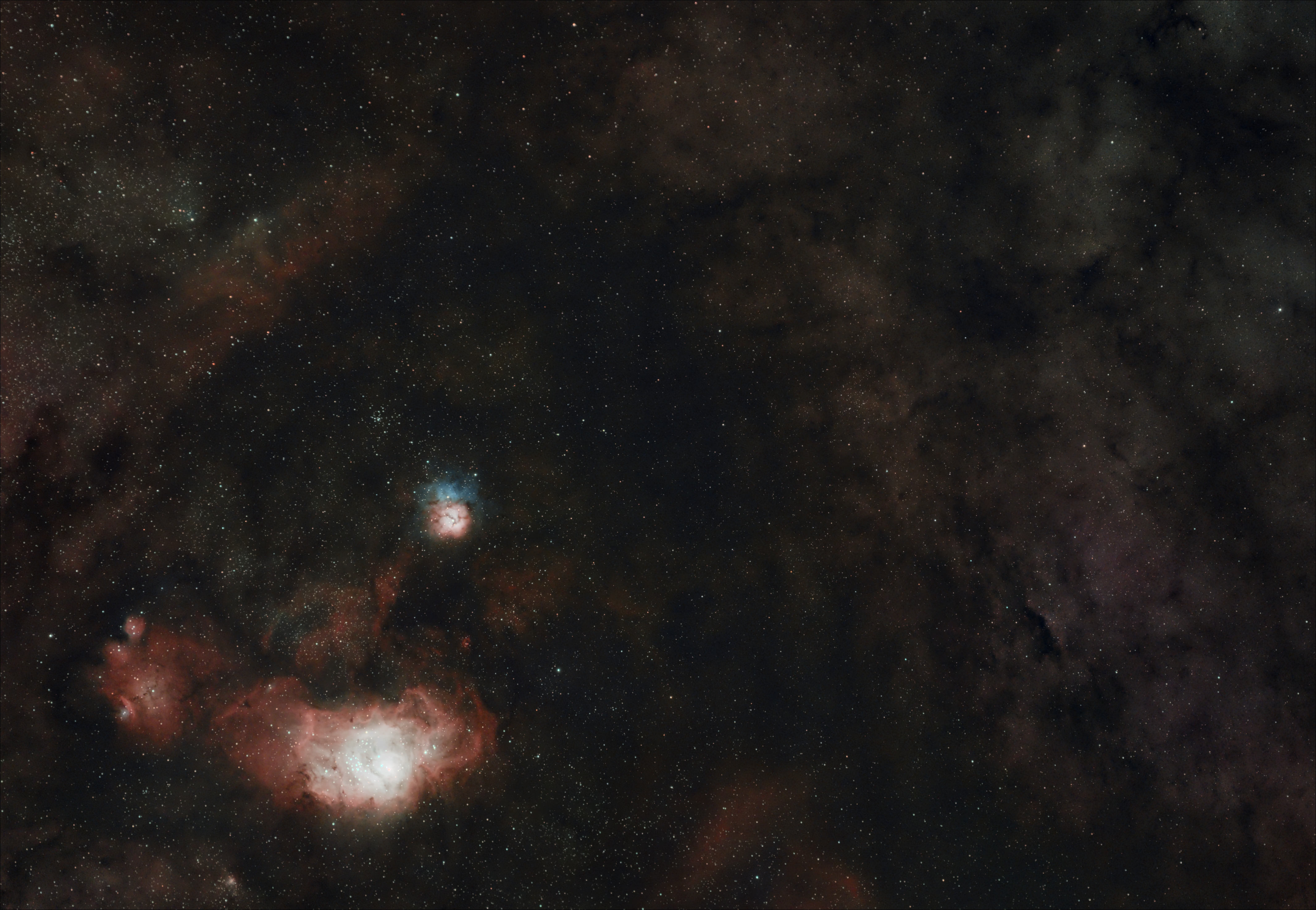 M20 Trifid, M8 Lagoon, NGC 6559 Chinese Dragon and everything nearby