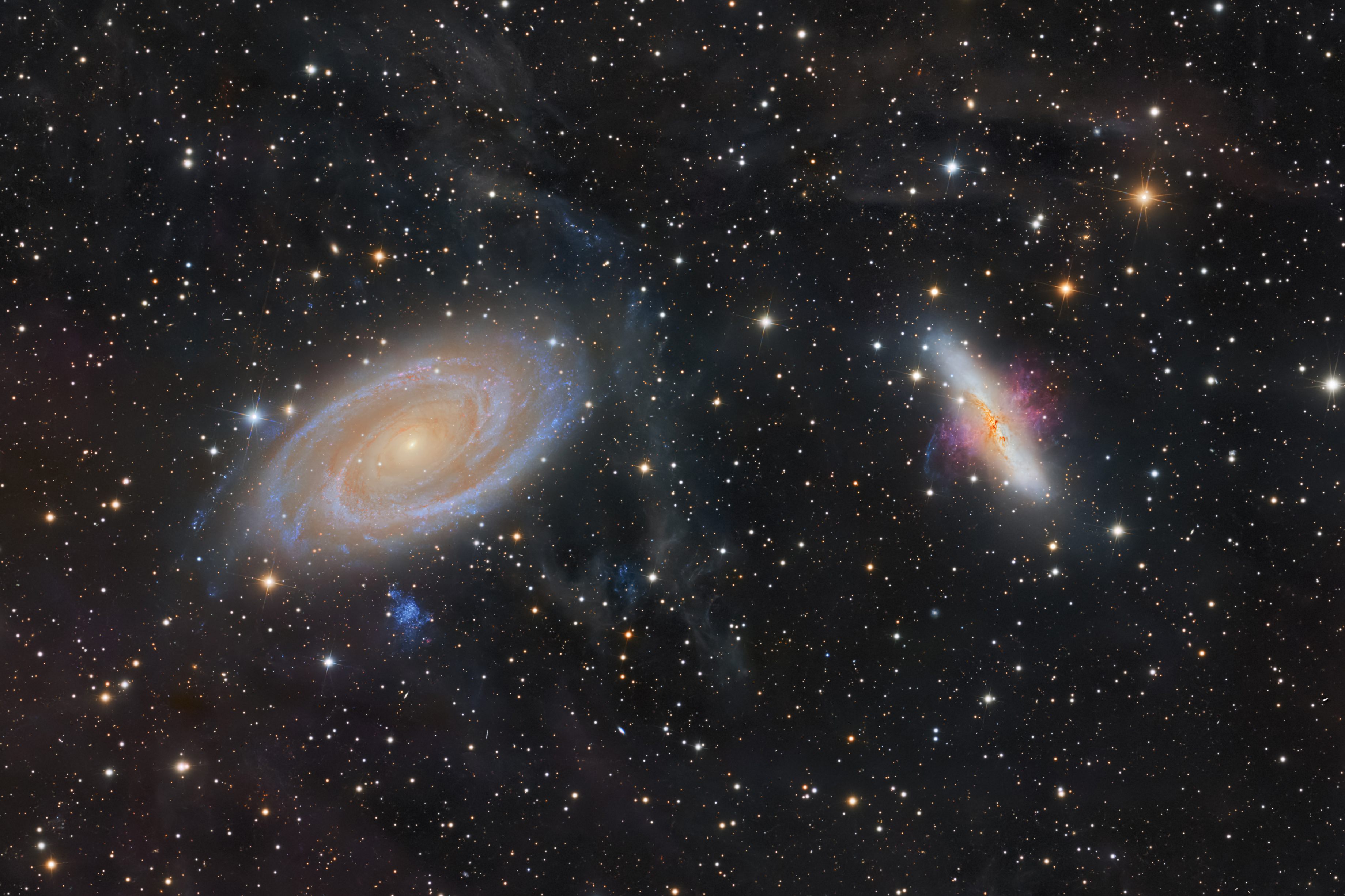 This is our second data release on galaxies M81 and M82 (Bode and Cigar). This release includes data exclusively from our colleagues from Russia! By combining multiple datasets using a computer provided to us by Sergey Nazarov, we obtained a deep image with a total exposure time of about 80 hours!