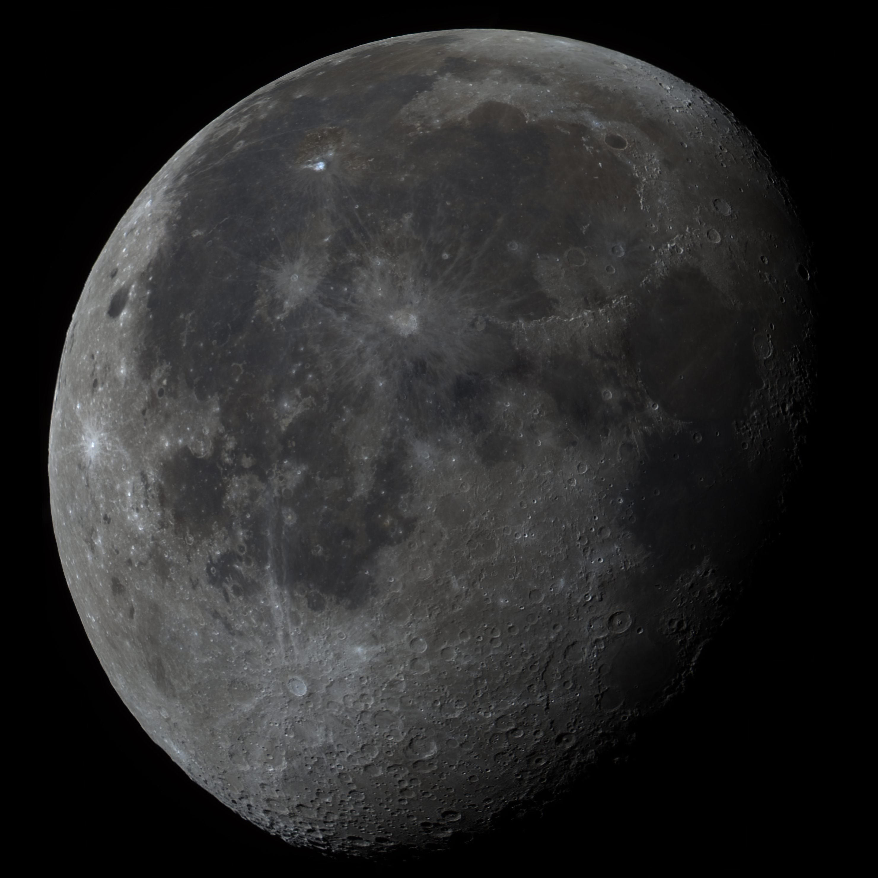 The Moon through a homemade 114mm Dobsonian telescope.