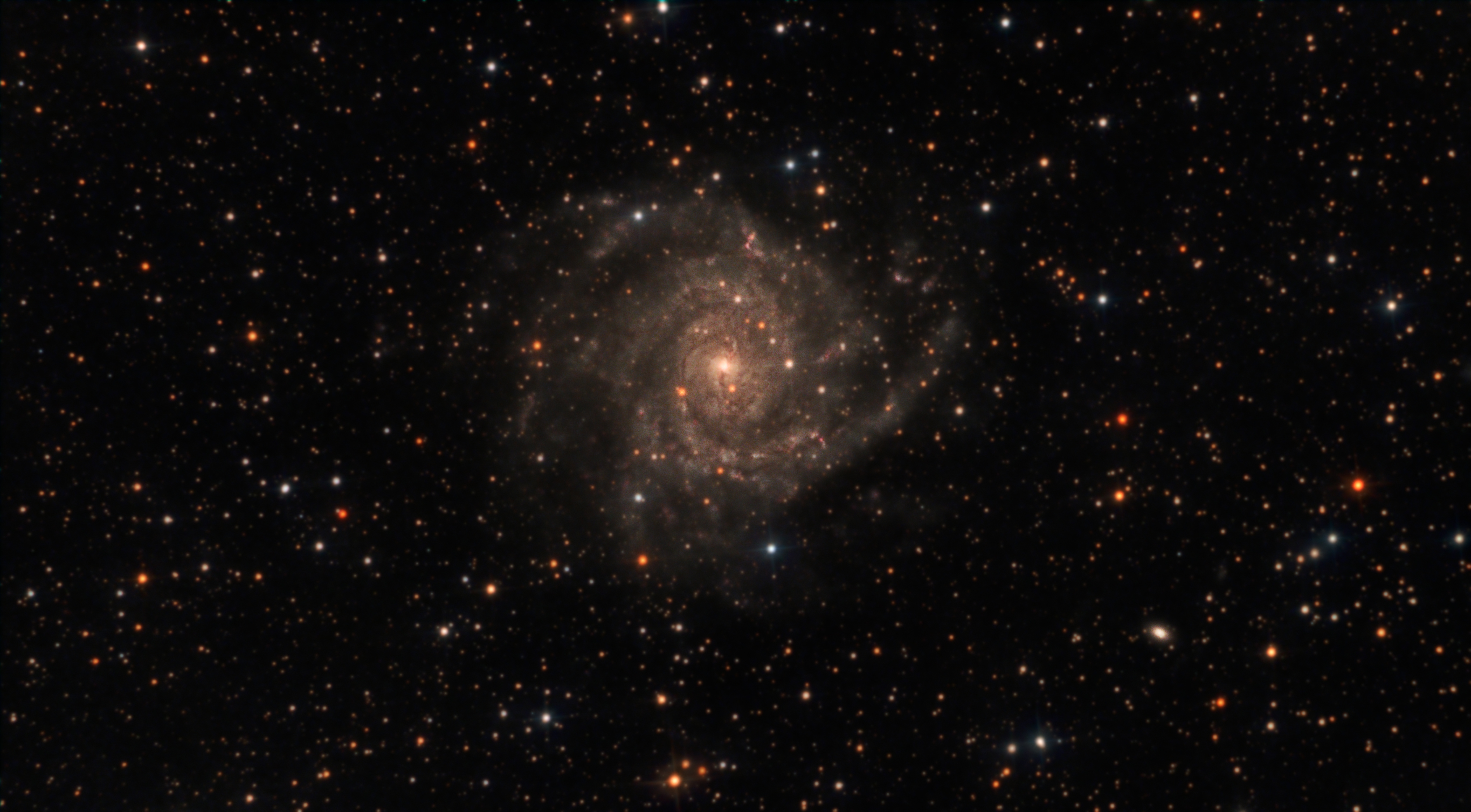 "IC 342 (also Caldwell 5) is an intermediate spiral galaxy in the constellation Camelopardalis. It is located near the galactic equator, where absorption of radiation by dust makes observation of the galaxy difficult. For the same reasons, it is difficult to determine the exact distance to the galaxy: modern estimates occupy an interval from 7 million light years to 11 million light years" - Wikipedia