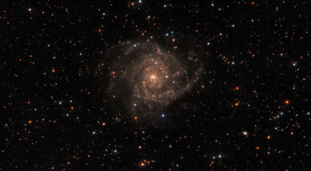 "IC 342 (также Caldwell 5) — это спиральная галактика промежуточного типа в созвездии Жирафа. Находится вблизи галактического экватора, где поглощение излучения пылью затрудняет наблюдение гал...