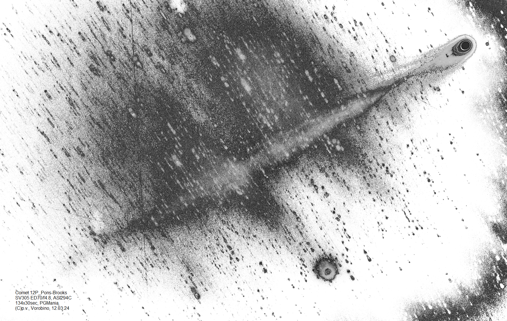 COMET 12P_PONS-BROOKS Telescope/Lens: SV503 70ED f/4.8 Camera: ZWO ASI294MC Mount: SW Star Adventurer Software: PGMania 1-Y Spb Astrokolhoz, Russia Exposure: 134 x 30" ISO/Gain: 400 Original size: https://deepskyhosting.com/iDFVeco Author: p.v.