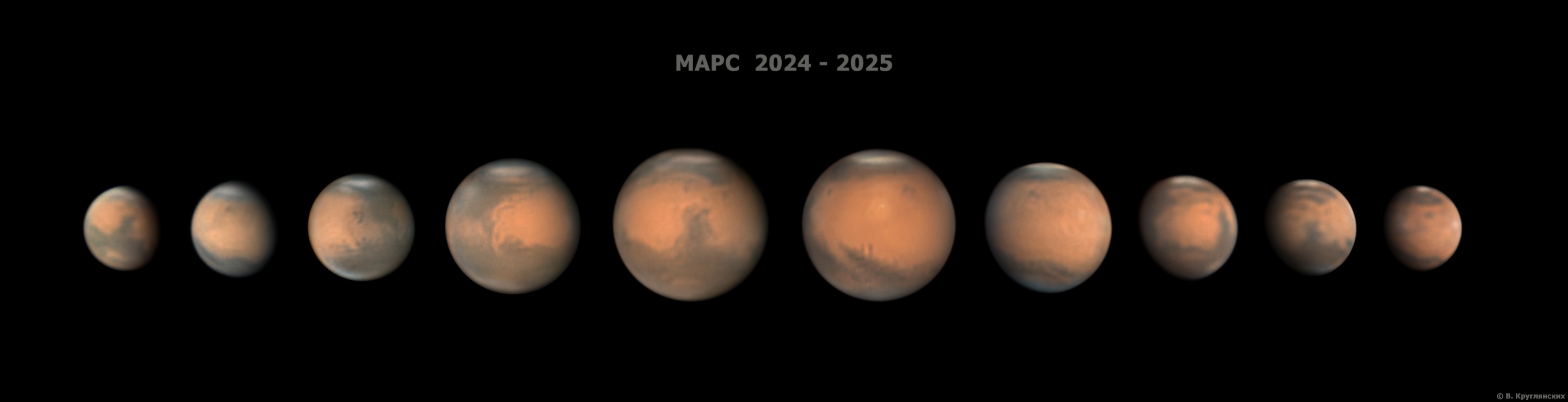 MARS 2024-2025 Telescope/Lens: Celestron C 11 XLT SC Camera: ZWO ASI462MM Samara, Russia Original size: https://deepskyhosting.com/isnxENi Author: Vitaliy Kruglyanskih