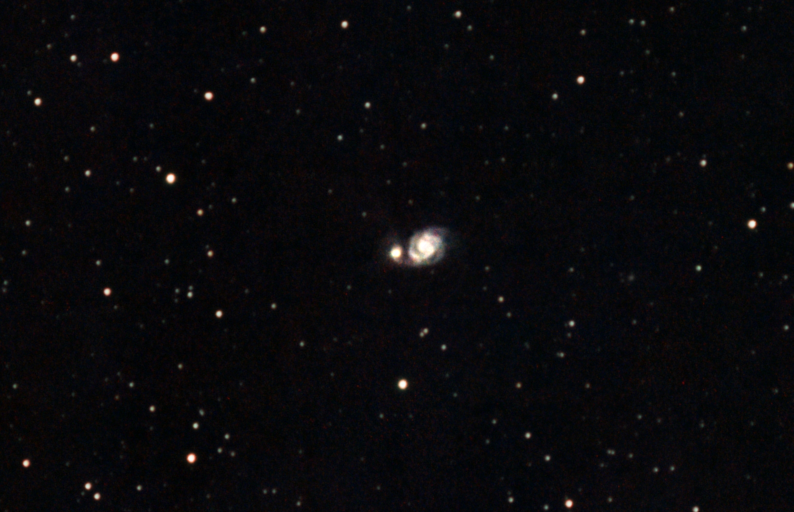 A new version with more or less proper processing. The galaxies are overexposed; I wanted to bring out the tidal tails and the bar.