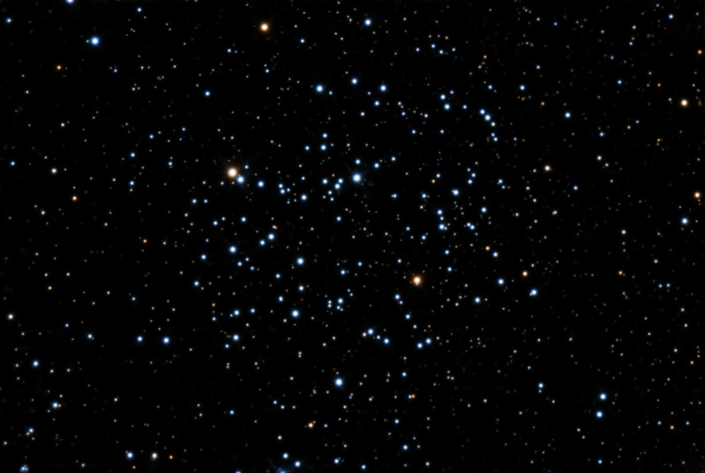 It was taken roughly with a ZWO 178MC camera, like many other open clusters that followed. Without calibration frames, processing the background was simply a nightmare.