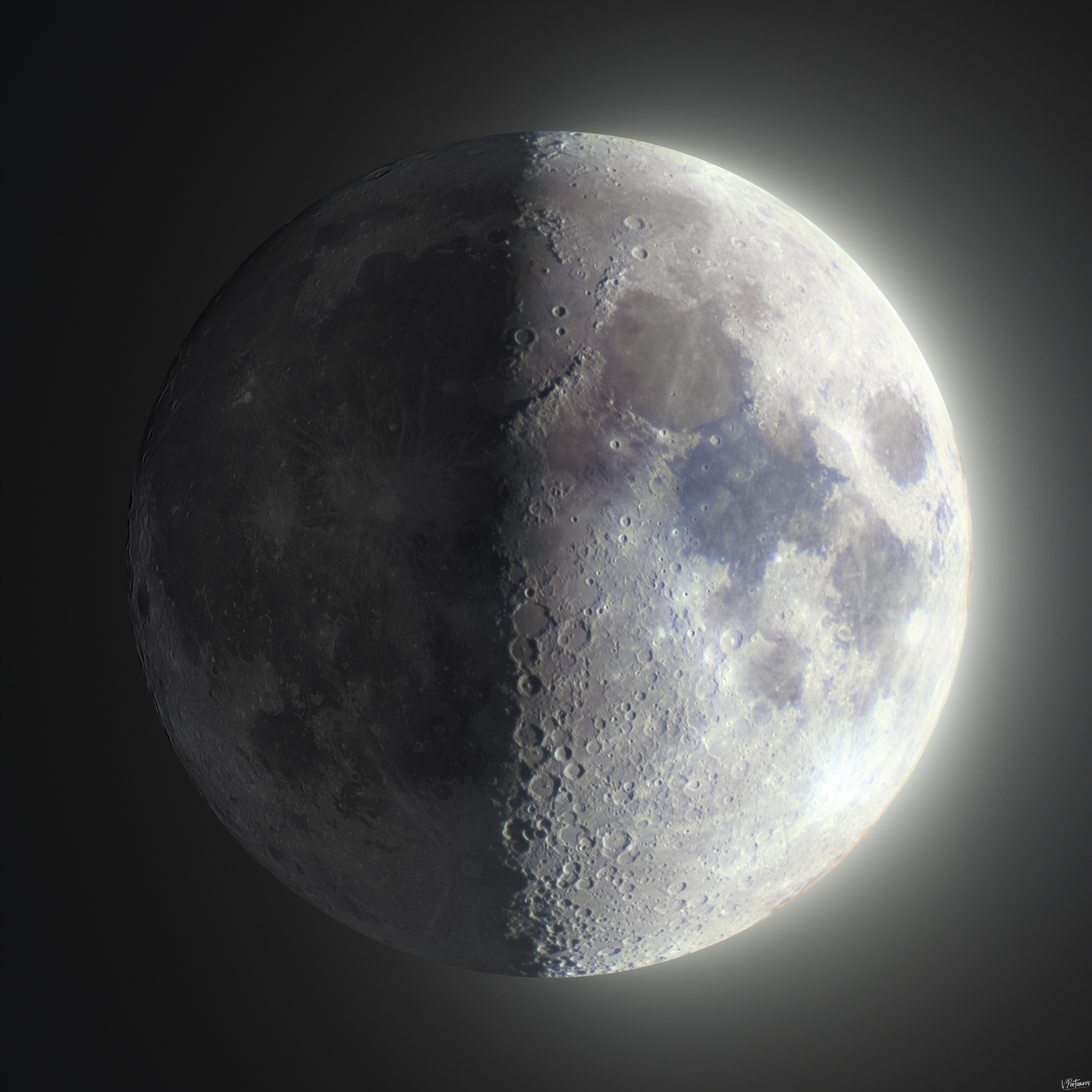 There's a bit of a trick here. I shot the bright part separately (about 250 photos), the glow separately as well (by increasing the ISO and exposure time) – 40 frames, and the shadowed part was taken from a separate full moon.